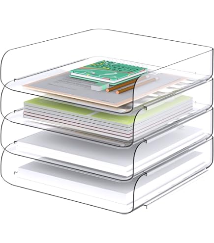 Hey, dieser WUSUPU Ablagekorb bringt richtig Ordnung auf deinen Schreibtisch! Mit 4 Ebenen für A4-Dokumente, Bücher, Notizen und Kleinkram. Aus schlagfestem PET-Material, total robust und langlebig. Das transparente Design ist genial - du siehst sofort was wo ist, ohne langes Suchen. Die intelligenten Stapelschnallen sorgen dafür, dass die Fächer auch beim Stapeln nicht wackeln und sparen dabei 70% Platz. Einfach zusammenstecken, kein Werkzeug nötig - sofort einsatzbereit. Die abgerundeten Kanten sind sicher und schonen die Hände. Perfekt für Büro, Zuhause, Schule oder Studentenwohnheime. Passt auf Schreibtische, in Bücherregale oder Schubladen. Einfach ein vielseitiger Organizer, der in jeder Umgebung gut aussieht!