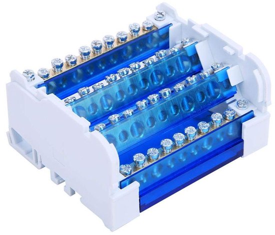 Für alle Elektro-Profis! Dieser Klemmenleisten-Block ist ein echter Platzsparer. 4 Eingänge, 24 Ausgänge - alles auf einmal! Nennstrom 125A, Spannung 500V. Perfekt für Schaltschränke.\n\nAus Messing gefertigt - super leitfähig und langlebig. Mit transparenter Abdeckung siehst du immer den Verdrahtungszustand ohne öffnen zu müssen. Isolationsbarrieren zwischen den Klemmen verhindern Kurzschlüsse.\n\nEinfach auf die DIN-Schiene klicken - montiert in Sekunden. Maße: 67x90x50mm - klein aber oho! Hält Temperaturen von -30 bis 110°C stand.\n\nBrandschutzklasse 94V-2 - also sicher und zuverlässig. Für alle Elektro-Installationen wo Platz knapp ist und viele Anschlüsse gebraucht werden. Einfach praktisch!