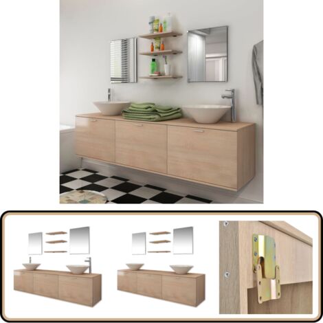 Wow, dieses MINIO Badmöbel-Set macht dein Badezimmer komplett! Im 4-teiligen Set enthalten: 1x Waschbecken Capri (60cm breit) mit Unterschrank, 1x Badspiegel mit Ablage und 2x große Hängeschränke (je 30.2x160cm). Aus 15mm starker laminierter Möbelplatte mit ABS-Kanten ist es super stabil und langlebig. Das moderne Design ohne Griffe sieht einfach mega edel aus in der Farbe Matera/Kastanien Breslau. Die Maße sind perfekt durchdacht - der Waschbeckenunterschrank bietet genug Stauraum, die Hängeschränke sind ideal für Handtücher und Badezimmer-Utensilien. Achtung: Siphon und Wasserhahn sind nicht im Lieferumfang enthalten! Mit insgesamt 75.2kg Gewicht ist es ein richtiges Qualitäts-Produkt. Verwandele dein Badezimmer in eine Wohlfühloase mit diesem durchdachten Möbel-Set!