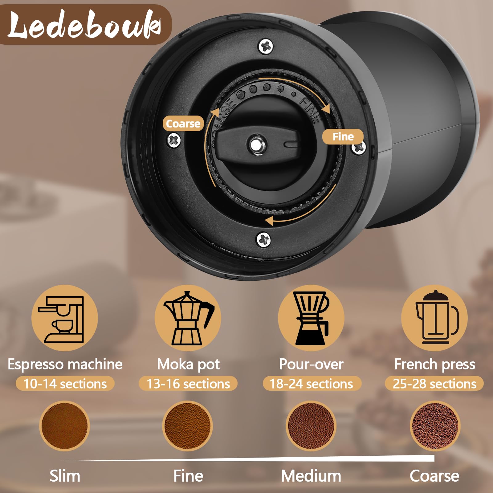 Für echte Kaffeeliebhaber! Diese stylische Handmühle mit präzisem Keramik-Mahlwerk mahlt deine Bohnen gleichmäßig und ohne Reibungshitze - so bleibt das volle Aroma erhalten. Mit 40 verstellbaren Mahlstufen von fein für Espresso bis grob für French Press ist sie perfekt für jede Brühmethode. Der transparente Glasbehälter zeigt dir immer genau, wie viel Kaffeepulver schon gemahlen ist. Der ergonomische Edelstahlgriff liegt super in der Hand und das matte ABS-Gehäuse ist robust. Inklusive Reinigungsbürste und hübscher Geschenkbox - ideal für Camping, Reisen oder die eigene Küche. Kapazität: 20-30g Bohnen, 25-35g Pulver. Maße: 169 × 57,8 × 181,5 mm. Dein perfekter Start in den Tag!