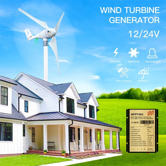 Erzeuge deinen eigenen Ökostrom! Dieses Komplettset mit 400W vertikaler Windturbine ist perfekt für den Einsatz im Garten, auf Booten, Wohnmobilen oder in Ferienhäusern. Die Nennleistung von 400W (max. 450W) reicht aus, um verschiedene Verbraucher mit sauberer Energie zu versorgen. Besonders praktisch: Sie startet bereits bei niedrigen Windgeschwindigkeiten von 2-2,5 m/s und passt sich automatisch der Windrichtung an. Mit IP67 Schutzklasse ist sie absolut wasserdicht und hält Temperaturen von -40°C bis 80°C stand. Die Flügel aus ABS-Material sind aerodynamisch optimiert und arbeiten mit nur 30dB erstaunlich leise. Bei Erreichen der Maximaldrehzahl von 300 U/min stoppt die Turbine automatisch, was sie besonders sicher macht. Maße: 85x38x19cm, Flügeldurchmesser 53cm bei 75cm Höhe. Im Lieferumfang enthalten: 3-flügeliger Windgenerator, Steuerung mit Kabeln in schwarz, grün und rot für einfache Installation, Bedienungsanleitung und Montagezubehör. Ein Schritt in die Unabhängigkeit - umweltfreundlich und kostensparend!
