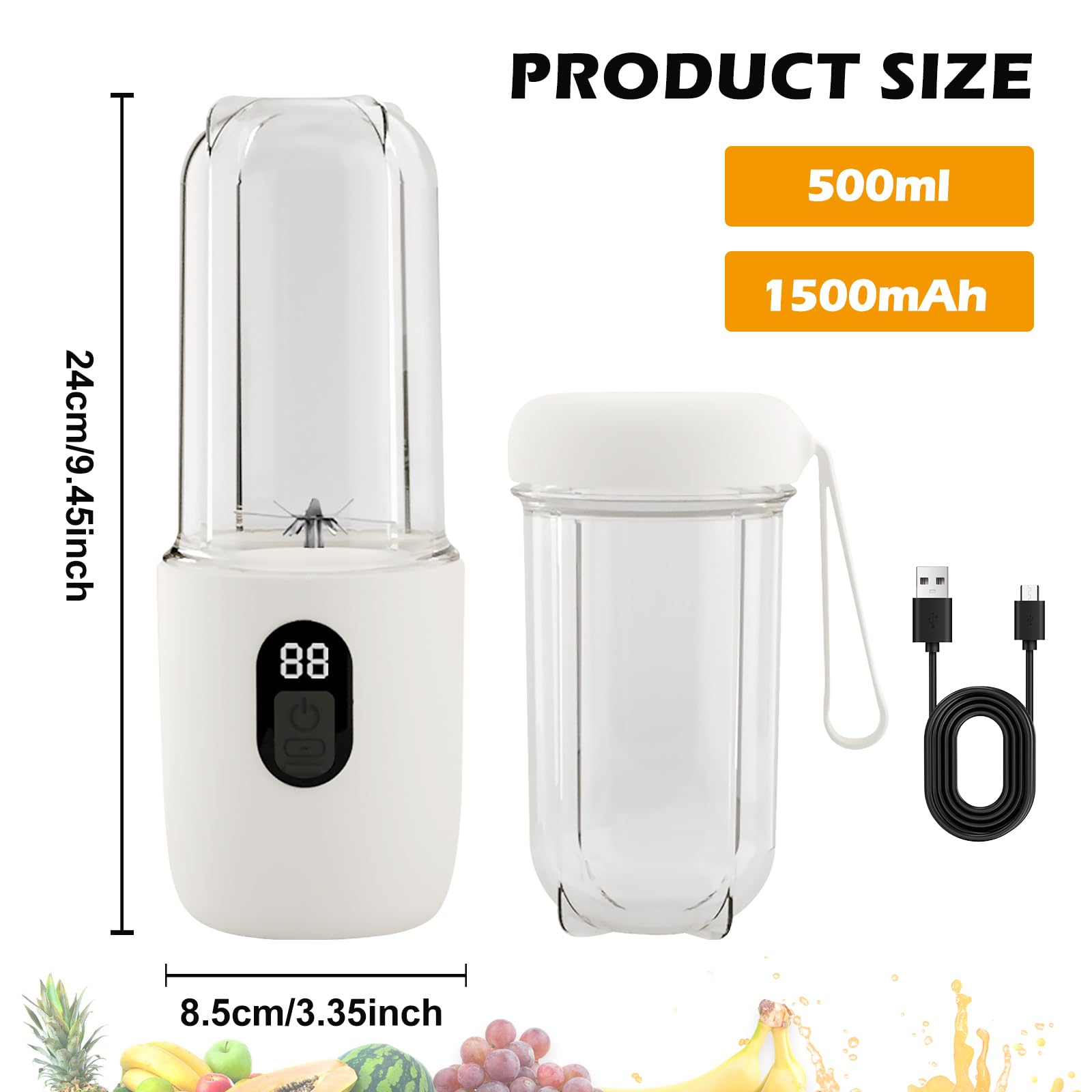 Eine Ladung reicht für 8-10 Smoothies! Einfache Reinigung - einfach Wasser einfüllen und mixen. Perfekt für Büro, Sport, Reisen oder Camping.