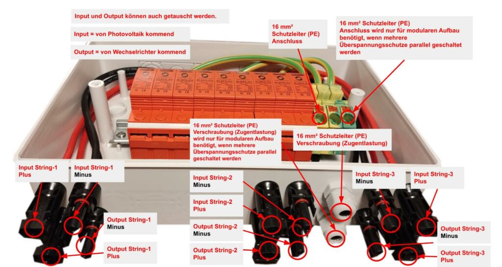 Hey, für deine Solaranlage ist dieser Überspannungsschutz genau das Richtige! Mit 40A und 1000V DC schützt er deine PV-Anlage zuverlässig vor Blitzeinschlägen, Überspannung und Kurzschlüssen. Das IP65 Gehäuse ist komplett staub- und wasserdicht - hält also auch bei extremem Wetter von -40°C bis +80°C stand. Super praktisch: Die transparente Abdeckung zeigt dir sofort, wenn was nicht stimmt. Installation? Kein Problem! Einfach per Plug-and-Play mit MC-4-Steckern oder Direktverdrahtung anschließen - spart dir 1-2 Stunden Arbeitszeit. Mit 3 Strings und austauschbaren Schutzkomponenten bis 40KA. Egal ob fürs Wohnmobil, Boot oder deine Hausanlage - damit bist du auf der sicheren Seite. Einfach montieren und entspannt Sonnenstrom genießen!