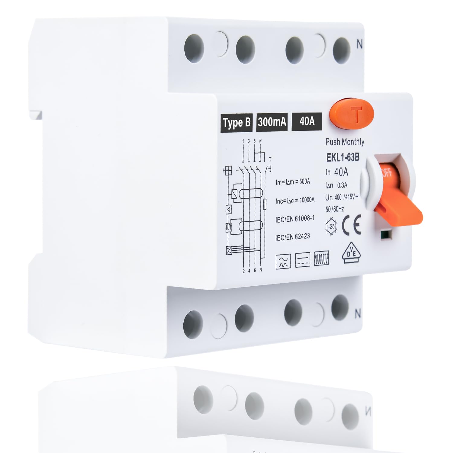 Achtung Elektriker! Dieser FI Schutzschalter ist einfach zuverlässig! 4-polig, 40A, 30mA, Type A, für 400V Wechselspannung. Mit flammhemmendem ABS-Gehäuse (IP20) und für 35mm Hutschienenmontage. Der Schutzschalter erkennt Fehlerströme sofort und schaltet binnen kürzester Zeit ab - das schützt Personen vor Stromschlägen und verhindert Geräteschäden! Das Verdrahtungsdrehmoment beträgt 3,5N*m, die kompakte Bauweise macht die Installation einfach. GYL9 hat eine höhere Qualität und längere Lebensdauer als vergleichbare Modelle! Einsetzbar in Industrie, Handel, Hochhäusern und Haushalten - überall dort, wo zuverlässiger Personenschutz gefragt ist! Einfach ein solides Bauteil für jede Elektroinstallation! Die Verarbeitung ist sauber und die Funktionen sind durchdacht. Damit seid ihr auf der sicheren Seite!