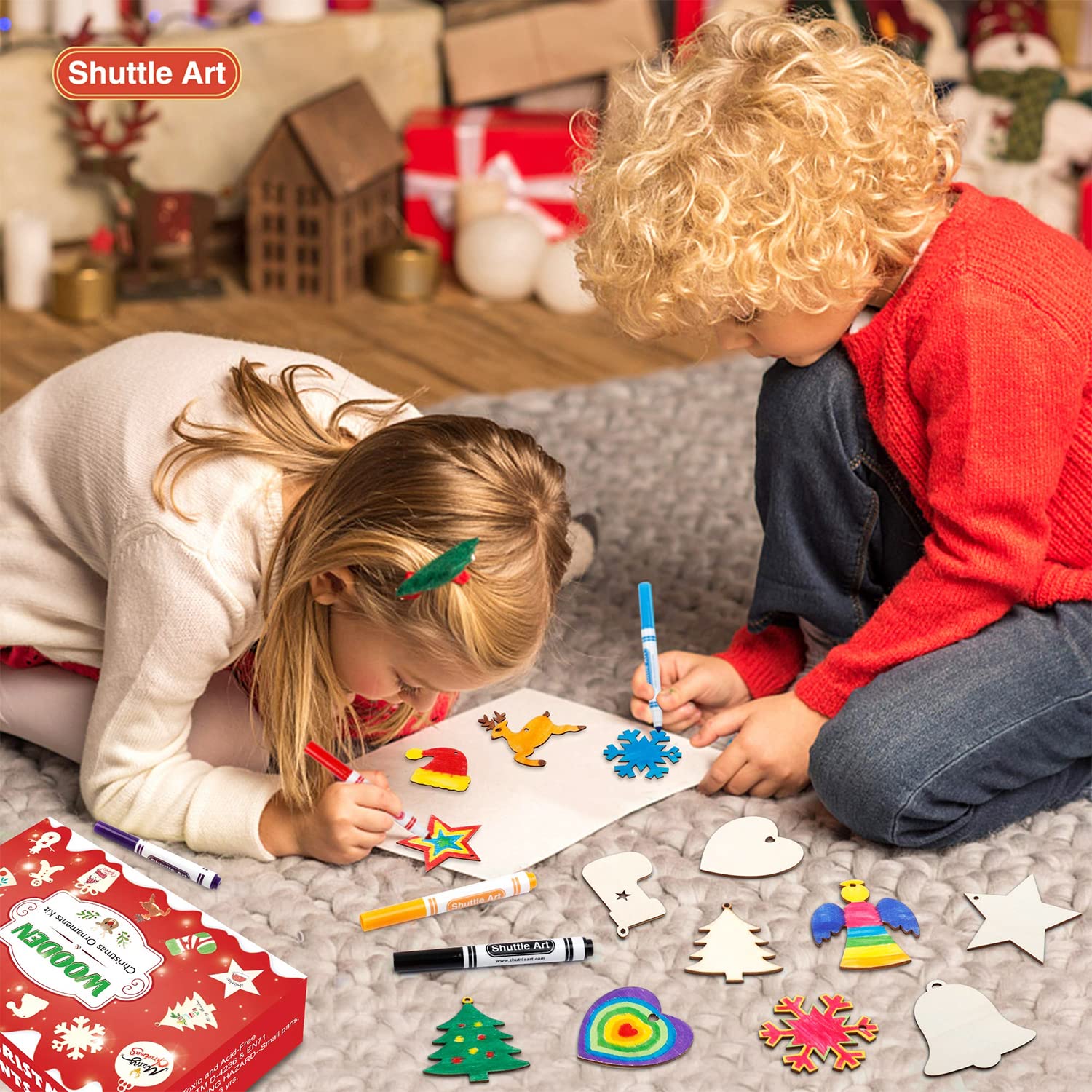 Weihnachtszeit ist Bastelzeit! Dieses mega umfangreiche Set mit 416 Teilen bringt Weihnachtsstimmung in euer Zuhause. Enthalten sind 100 Holzanhänger in 10 verschiedenen Formen wie Schneeflocken, Weihnachtsbäume und Rentiere - alle aus Naturholz und lasergeschnitten mit glatten Oberflächen. Dazu gibt's 50 bunte Glocken, 50 Plüsch-Bommeln, 50 Holzperlen, 50 Glotzaugen, 12 bunte Marker, 100 Schnüre und 2 Packungen Rautenaufkleber. Die Holzanhänger haben bereits vorgebohrte Löcher, also könnt ihr sie einfach aufhängen. Perfekt für die ganze Familie - Kinder können ihre Kreativität ausleben und Erwachsene entspannen beim Basteln. Ob für den Weihnachtsbaum, Fensterdekoration oder Geschenkanhänger - mit diesem Set seid ihr bestens ausgestattet für eine gemütliche Bastelstunde!