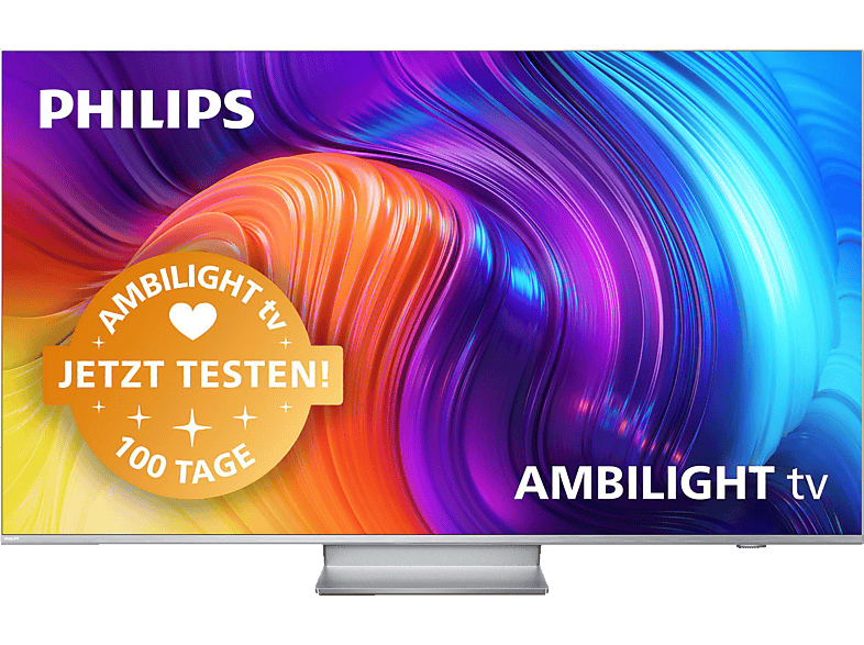 Fernsehen wird mit diesem Philips Ambilight TV zum absoluten Erlebnis! Die eingebauten LED-Leuchten an der Rückseite projizieren das Bild farbig an die Wand - so wirkt dein 43 Zoll TV gleich viel größer und du tauchst komplett in das Filmerlebnis ein. Die 4K Ultra HD Auflösung mit Pixel Precise Technology sorgt für gestochen scharfe Bilder, satte Farben und flüssige Bewegungen - ob bei Action-Szenen oder Sportübertragungen. Mit Dolby Vision und Dolby Atmos bekommst du Kino-Feeling pur: Brillante Farben kombiniert mit immersivem, mehrdimensionalem Sound der dich mitten ins Geschehen versetzt. Das Titan OS ist super intuitiv - finde sofort deine Lieblingssendungen auf Netflix, Prime Video und Co. Alles an einem Ort, ohne langes Suchen. Perfekt fürs Wohnzimmer oder Schlafzimmer, dieser TV macht aus jedem Filmabend ein besonderes Event. Einfach aufstellen, anschließen und in die Welt des Ambilight eintauchen - du wirst nie wieder ohne wollen!