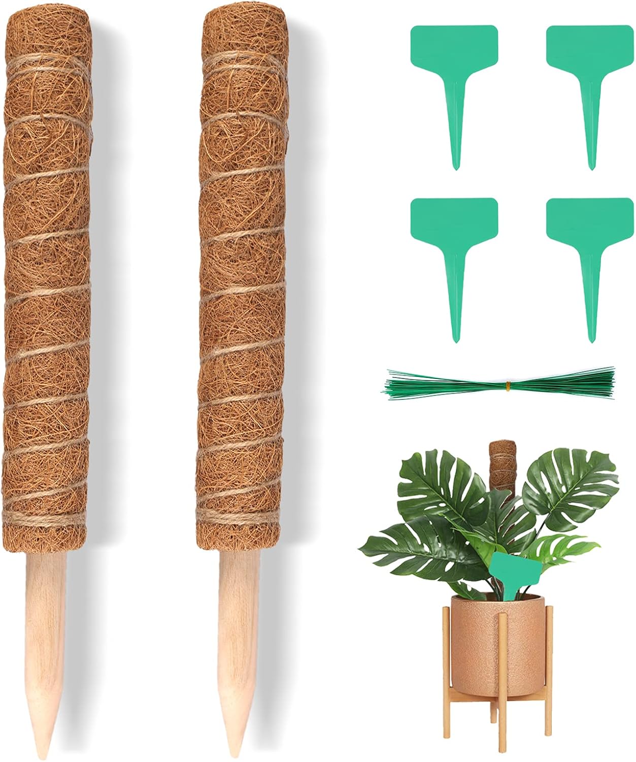 Hey Pflanzen-Eltern! Diese Kokosstäbe sind die Rettung für alle Kletterpflanzen! Aus 100% natürlicher Kokosnussschale - super umweltfreundlich! Jeder Stab ist 43cm hoch, und du bekommst 2 Stück plus 10 Pflanzenbinder (20cm). Einfach in die Erde stecken und deine Pflanzen können ranken! Perfekt für Monstera, Efeu, Geldbäume und alle anderen Kletterkünstler. Die raue Oberfläche gibt den Pflanzen super Halt. Wenn's mal höher sein soll: Einfach zwei Stäbe zusammenstecken! Achtung: Beim Einstecken am besten Handschuhe tragen - die Spitze ist etwas scharf! Super für drinnen und draußen, sieht natürlich aus und ist viel schöner als Plastik-Stäbe. Deine Pflanzen werden's dir danken mit üppigem Wachstum! Einfach mal ausprobieren - du wirst überrascht sein, wie gut das funktioniert!