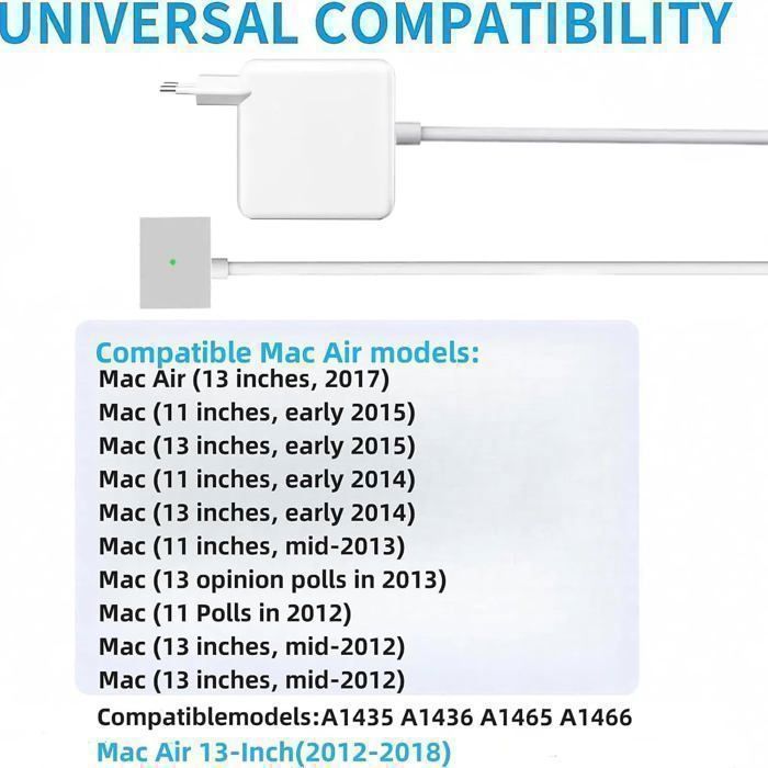 Puh, dein MacBook Air Ladegerät gibt den Geist auf? Kein Problem! Dieses 45W Ersatz-Ladegerät mit T-Tip Stecker ist die perfekte Lösung für verschiedene MacBook Air Modelle. Kompatibel mit 11-Zoll und 13-Zoll Modellen ab Mitte 2012 - also für die meisten Geräte der letzten Jahre. Passt zu Teilenummern A1435, A1436, A1465, A1466 und vielen mehr. Mit der intelligenten LED-Anzeige siehst du sofort den Ladestatus: Orange = lädt, Grün = voll! Das Beste: Das Ladegerät verfügt über umfassenden Schutz vor Überstrom, Überspannung und Überlastung - dein teures MacBook ist also sicher. Keine lästigen Geräusche, keine Funken und keine übermäßige Hitze beim Laden. Einfach anschließen und dein Akku füllt sich zuverlässig. Wichtig: Bitte nur mit kompatiblen Modellen verwenden und bei Gewitter vom Netz nehmen. Mit 12 Monaten Garantie und rund um die Uhr Support musst du dir keine Sorgen machen. Endlich wieder sorgenfrei arbeiten und dein MacBook immer einsatzbereit haben!