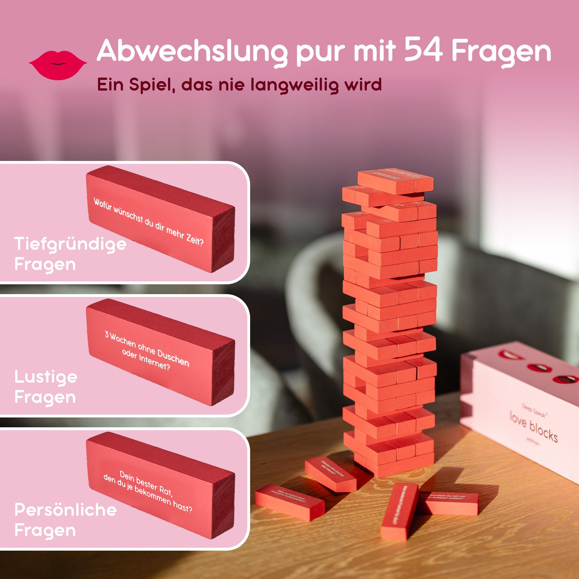 Wow, was für ein lustiges Spiel für Paare! Das ROTKUSZ Tower Stack Spiel bringt richtig Schwung in eure gemeinsame Zeit. Mit 48 Holzblöcken, die alle mit verschiedenen Herausforderungen bedruckt sind, wird es nie langweilig. Aus nachhaltigem Holz gefertigt und an den Kanten geschliffen, gibt's keine scharfen Kanten. Perfekt für Date Nights, um die Intimität zu steigern oder einfach mal zusammen zu lachen. Ob ihr euch gerade erst kennengelernt habt oder schon Jahre zusammen seid - dieses Spiel bringt euch näher zusammen. Leicht zu transportieren, also auch ideal für Urlaub oder Wochenendtrips. Einfach abwechselnd Blöcke ziehen, die Challenge erfüllen und hoffen, dass der Turm nicht einstürzt! Ein super Geschenk für Verliebte oder einfach für einen unterhaltsamen Spieleabend zu zweit.