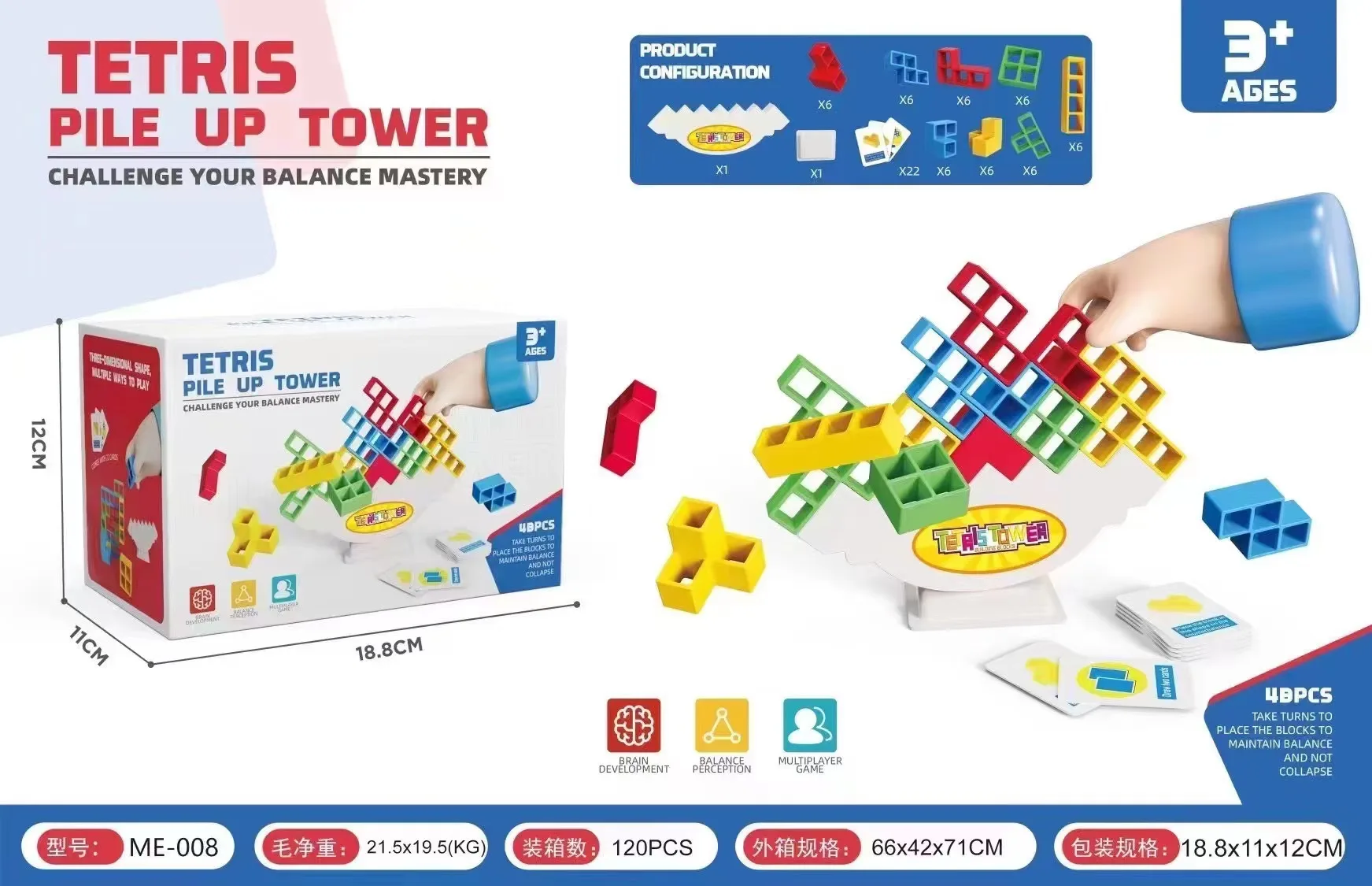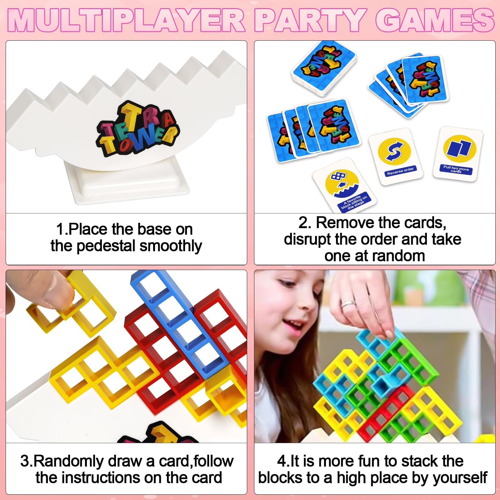 Tetris mal anders! Dieses LURICO Tower Spiel bringt Spaß für die ganze Familie. Mit 48 Teilen in 4 verschiedenen Formen und Farben. Aus ungiftigem ABS-Material mit glatten Kanten - sicher für Kinder ab 5 Jahren. Zwei Spielmodi: Einzelspieler trainiert Geduld und Gleichgewicht, zu zweit wird's zum spannenden Wettkampf! Enthält 22 Spielkarten für verschiedene Challenges. Fördert Hand-Augen-Koordination, Konzentration und logisches Denken. Perfekt für Kindergeburtstage, Familienabende oder als Geschenk. Einfach die bunte Basis aufstellen und losstapeln - wer bringt den Turm zum Einsturz? Spielspaß für 8-10 Runden, dann von vorne beginnen. Ein Klassiker neu erfunden!