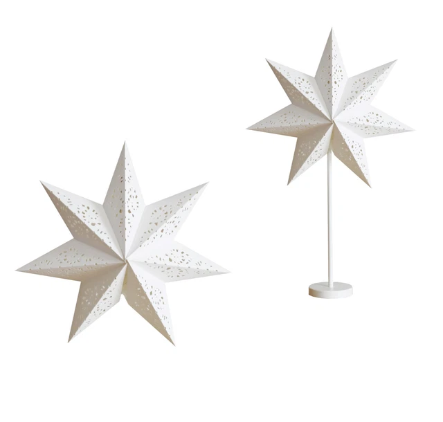 Träumst du von gemütlichem Licht in deinen vier Wänden? Dieser süße Stern-Leuchtenschirm aus Papier bringt genau die richtige Stimmung! Mit 48cm Durchmesser ist er ein echter Hingucker - ob im Kinderzimmer, Wohnzimmer oder als Fensterdekoration. Er verbreitet ein warmes, weiches Licht, das jeden Raum sofort gemütlich macht. Wichtig: Lampe und Aufhängung sind nicht dabei - du brauchst also noch eine LED-Leuchte und entweder eine Lampenaufhängung oder einen Leuchtenfuß. Aber das ist ja schnell besorgt! Der Stern ist aus stabiler Pappe gefertigt und sieht in weiß einfach zeitlos schön aus. Perfekt für alle, die es gemütlich mögen und ihrem Zuhause eine persönliche Note verleihen wollen. Einfach aufhängen, LED-Birne rein - und schon strahlt dein Zimmer in warmem Sternenlicht!