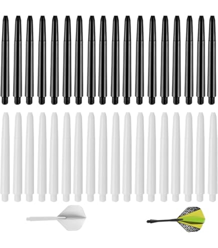 Diese bunten Dartschäfte bringen frischen Wind in dein Dartspiel! Das 9er-Set in 48mm Länge passt perfekt zu den meisten Steel-Darts mit mittlerem 2BA-Gewinde. Aus robustem Kunststoff gefertigt, sind sie leichter als Aluminium-Schäfte, aber trotzdem super stabil. Die kräftigen Farben sehen nicht nur gut aus, sondern helfen auch, deine Pfeile besser auseinanderzuhalten. Das Besondere: Das Ende, das den Flight hält, ist extra eng gearbeitet, sodass deine Flights sicher sitzen und nicht rausrutschen. Für noch mehr Stabilität empfehlen wir die Verwendung von Gummi-O-Ringen - dann sitzt alles bombenfest! Einfach die alten Schäfte abschrauben und diese neuen aufsetzen - schon balancieren deine Darts besser und fliegen präziser. Perfekt also, um dein Spiel zu verbessern oder einfach mal was Neues auszuprobieren. Egal ob Training oder Turnier - mit diesen Schäften machst du garantiert eine gute Figur!