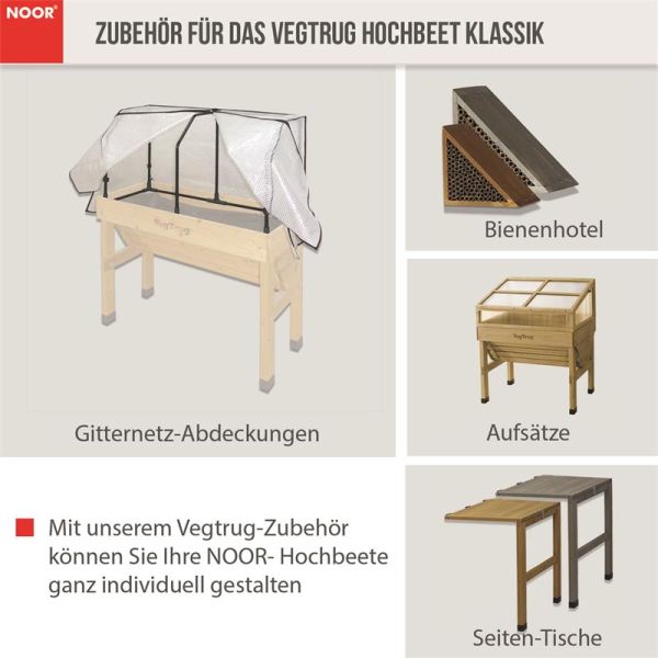 Das VegTrug Hochbeet Kids ist die perfekte Einführung in die Welt des Gärtnerns für die Kleinen! Mit den Maßen 49x46x63cm ist es genau die richtige Größe für Kinderhände. Hergestellt aus 100% FSC-zertifiziertem Holz - nachhaltig und langlebig. Behandelt mit wasserbasiertem, lebensmittelechtem Konservierungsmittel, damit keine Giftstoffe in die Pflanzen gelangen. Fasst 40 Liter Kompost und kommt mit biologischem Vlies. Ideal für Garten oder Balkon. So lernen Kinder spielerisch, woher unser Essen kommt - und haben sogar Spaß am Gemüseessen! Fördert Verständnis für Natur und Nachhaltigkeit. Das perfekte Geschenk für kleine Gärtner!