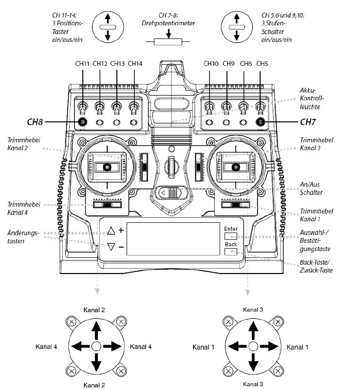 Hey RC-Fans! Die Carson FS 4K Fernsteuerung ist ein echtes Profi-Teil für deine Modellbau-Projekte. Mit 4 Kanälen, davon zwei stufenlos regelbar, hast du die volle Kontrolle über dein RC-Modell. Der wasserdichte Nano-Empfänger ist super kompakt (nur 33x17x13 mm) und passt in fast jedes Fahrzeug. Das LCD-Display zeigt dir alle wichtigen Einstellungen an, und die kugelgelagerte Steuereinheit sorgt für mega-präzises Lenken. Du kannst Servo-Richtungen umkehren, Trimmfunktionen nutzen und sogar 15 Modelle speichern! Die Fernsteuerung liegt dank des 4° geneigten Lenkrads perfekt in der Hand. Mit Failsafe-Funktion bist du immer auf der sicheren Seite. Ob für Cars, Boote oder andere RC-Modelle - mit diesem Sender machst du nichts falsch. Einfach Batterien rein und los geht der Fahrspaß!
