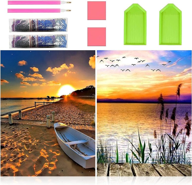Entdecke die entspannende Welt des Diamond Paintings! Dieses 4er Set mit 30x40cm Motiven zeigt stylische Make-up Designs die richtig was hermachen. Mit runden Strasssteinen die das Licht super einfangen und das Bild zum Glänzen bringen. Alles dabei was du brauchst: Leinwand mit Klebefläche, Diamant-Stift, Schale und die bunten Steinchen. Perfekt für Erwachsene zum Abschalten und kreativ sein. Die Motive sind vorbedruckt, also einfach die Steine nach den Symbolen aufkleben. Super für Anfänger und Fortgeschrittene. Macht nicht nur Spaß, sondern sieht als Deko an der Wand auch toll aus. Ideal als Geschenk oder für gemütliche Abende zu Hause. Tauche ein in dieses beruhigende Hobby und erschaffe dein persönliches Kunstwerk!