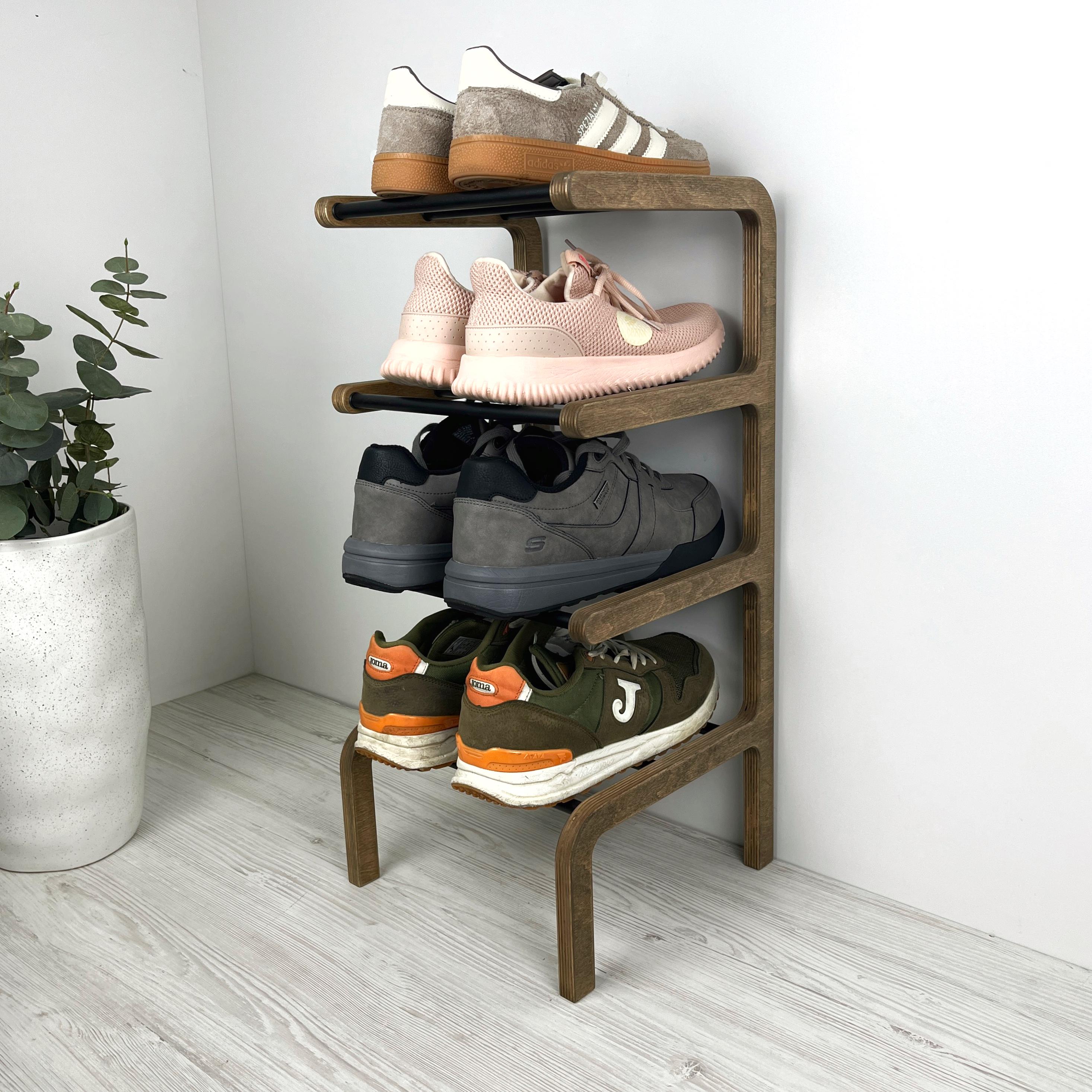 Boah, endlich Ordnung im Schuhchaos! Diese Schuhstapler im 4er-Set sind die Lösung für alle, die zu viele Schuhe haben. Jedes Teil ist doppelschichtig - oben und unten passt je ein Paar Schuhe rein. Also 4 Stapler = Platz für 8 Paar Schuhe! Aus robustem PP-Kunststoff, rutschfest und mit verstärktem Boden. Maße: 25x22x11,5cm - kompakt aber geräumig. Das ausziehbare Design macht's super einfach, Schuhe rauszunehmen und reinzustellen. Perfekt für Sportschuhe, High Heels, Hausschuhe, Sandalen - einfach alles! Die erhöhten Punkte verhindern das Verrutschen. Ob im Schrank, unter dem Bett, im Flur oder Eingangsbereich - damit wird jeder Platz optimal genutzt. Leicht zu reinigen und stabil - hält ewig! Achtung: Bei Herrenschuhen über Größe 42 eventuell etwas eng, aber meist klappt's trotzdem.