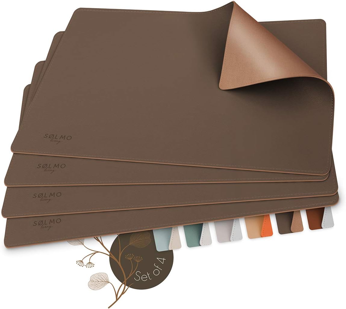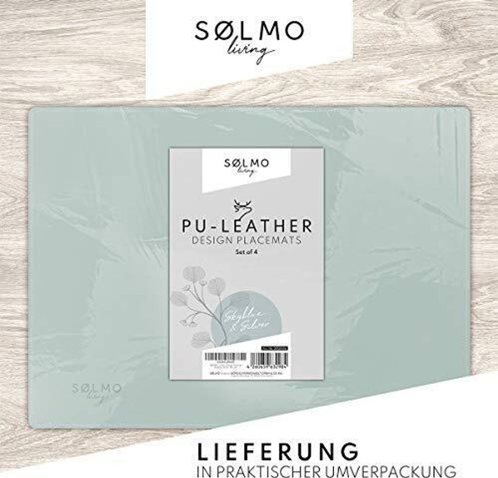 • Sølmo Tischset 4er Set PU-Leder - Hitzebeständig 43x30cm SkyBlue/Silver