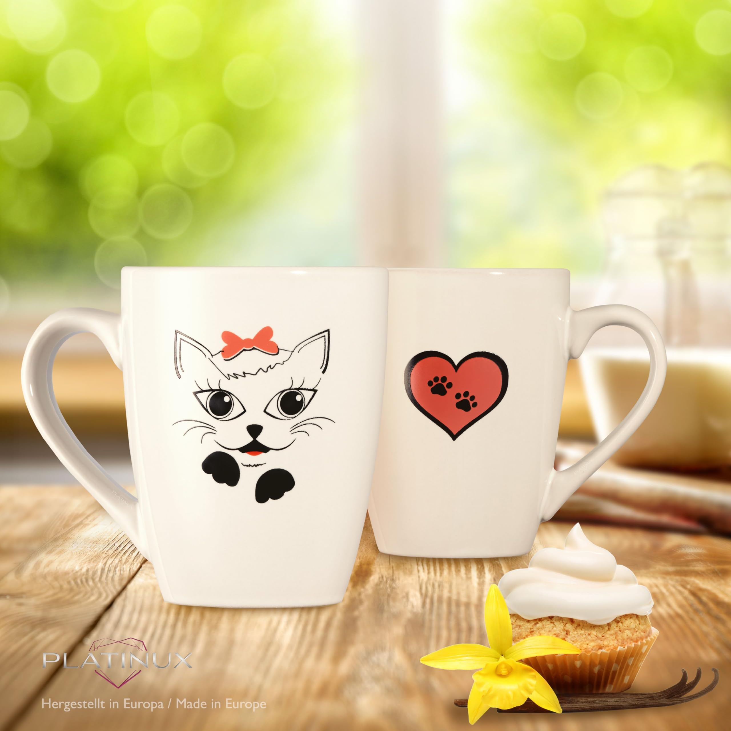 Diese niedlichen Katzen-Tassen bringen gute Laune in deine Kaffeepause! Das 4er-Set aus hochwertigem Porzellan hat ein bezauberndes mehrfarbiges Katzen-Design das jeden Tag versüßt. Jede Tasse fasst 360ml (12 Unzen) - perfekt für Kaffee, Tee, Kakao oder Milch. Super praktisch: Die Tassen sind stapelbar und sparen so Platz im Schrank. Im Lieferumfang sind passende Untersetzer dabei, die vor Hitze schützen und für sicheren Stand sorgen. Aus robustem, lebensmittelechtem Porzellan gefertigt - spülmaschinenfest und hält die Temperatur deiner Getränke optimal. Ob fürs Frühstück, die Kaffeepause im Büro oder gemütliche Abende auf dem Sofa - diese Tassen machen jedes Getränk zum besonderen Moment. Ein tolles Geschenk für Katzenliebhaber oder einfach für dich selbst, um deine Küche zu verschönern!