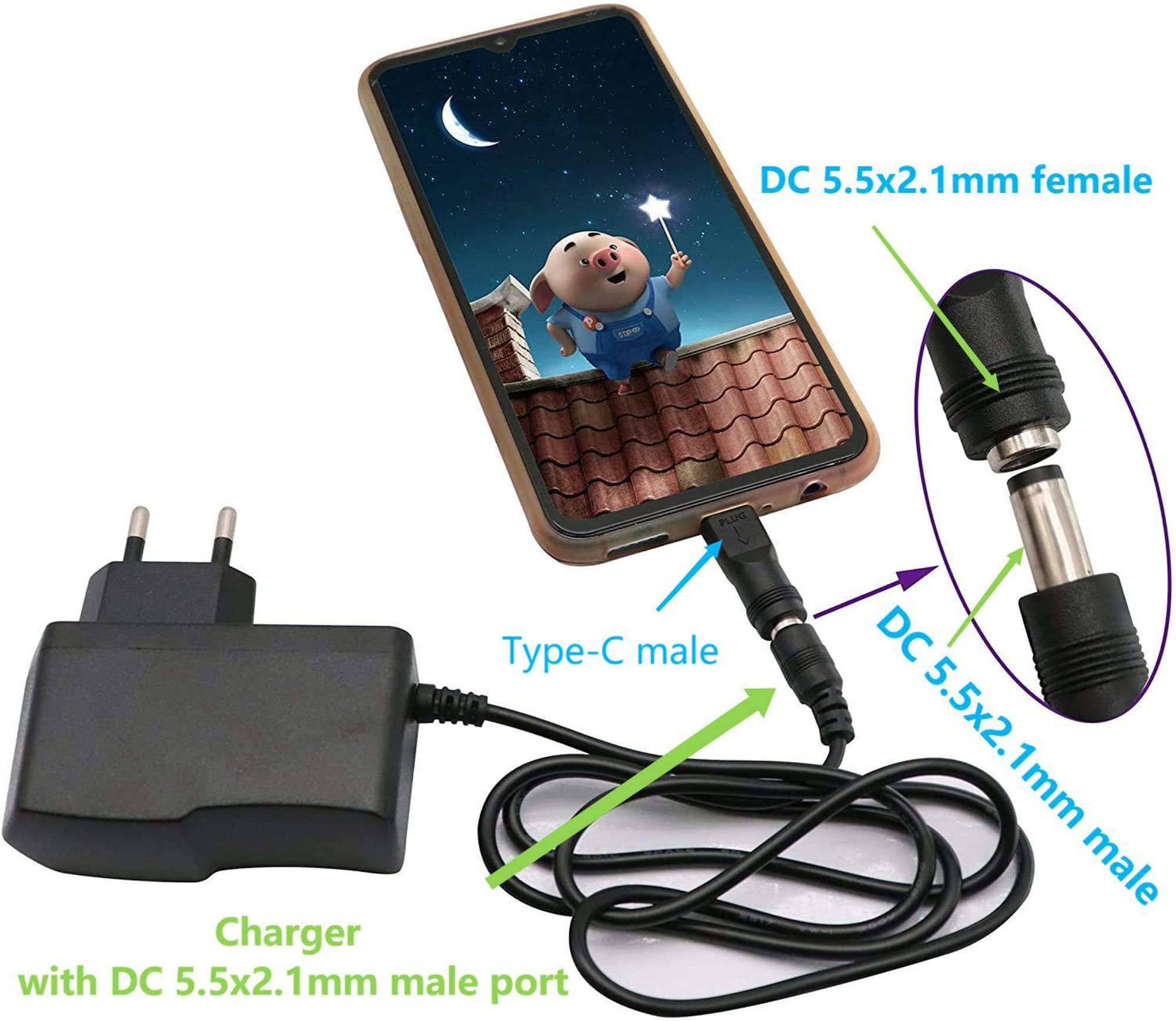 Praktische Adapterkabel für alle, die Geräte mit DC-Anschluss laden wollen! 4 Stück DC 5.5mm x 2.1mm auf USB-C Kabel, je 30cm lang. Unterstützt 5V und bis zu 3A - perfekt für schnelles Laden. Aus reinem Kupfer für beste Leitfähigkeit, mit robustem PVC-Mantel. Super für USB-C Laptops, Tablets, Smartphones, aber auch für LED-Leuchten, Ventilatoren, kleine Elektrogeräte. Nur für Stromübertragung, keine Datenübertragung. Leicht und kompakt (nur 10g pro Kabel), passt in jede Tasche. Einfach den DC-Stecker in die Stromquelle und USB-C in dein Gerät - schon lädt es. Mit 4 Kabeln hast du immer Ersatz oder kannst mehrere Geräte gleichzeitig betreiben. Einfache Lösung für viele Lade-Probleme!