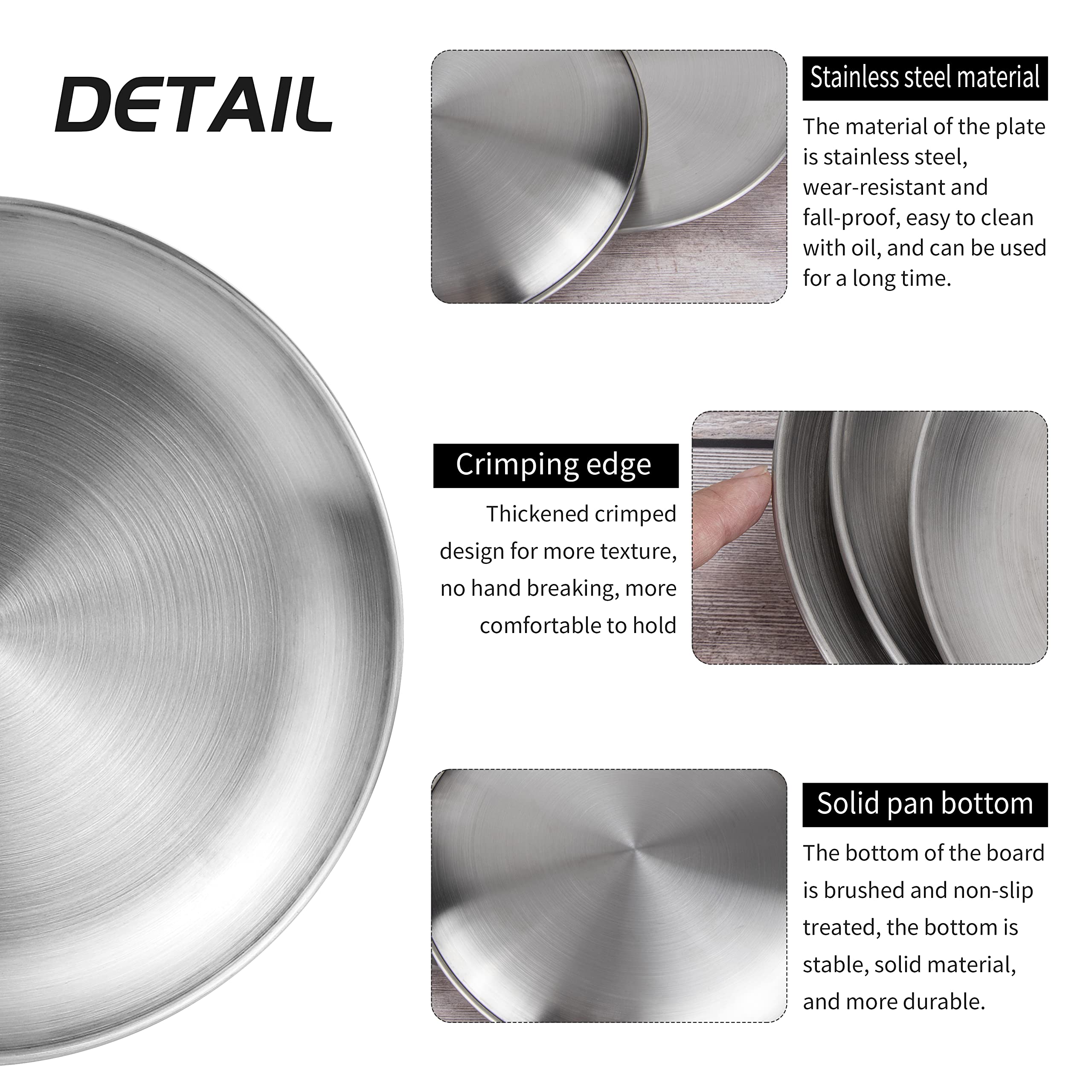 Ob Camping, Gartenparty oder einfach nur ein gemütlicher Abend daheim - diese 4 Edelstahlteller rocken einfach jede Situation! Mit 20 cm Durchmesser, doppellagig (hält die Speisen länger warm) und total robust. Kein Rost, keine Flecken, kein Zerbrechen - einfach ab in die Spülmaschine und fertig. Sie sehen auch noch richtig stylisch aus, fast ein bisschen wie Gastro-Geschirr, aber für zuhause. Perfekt nicht nur für Hauptgerichte, sondern auch als Präsentierteller für Käse, Obst oder Cupcakes. Aus hochwertigem Edelstahl, langlebig und absolut alltagstauglich.