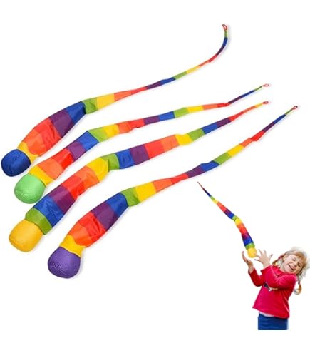 Bunte Spielerei für drinnen und draußen! Diese 4 Regenbogen-Schweifbälle mit je 95cm Länge bringen richtig Schwung in den Spielalltag. Aus weicher, umweltfreundlicher Seidenwolle gefertigt - geruchsneutral und farbecht. Perfekt für Kinder von 3-8 Jahren zur Förderung der Motorik und Hand-Augen-Koordination. Die langen, bunten Schwänze erzeugen beim Werfen und Fangen tolle visuelle Effekte. Ideal für den Kindergarten, Sportunterricht oder zum Spielen im Park. Leicht und robust - begleiten deine Kinder durch die ganze Kindheit. Fördert spielerisch die Farbwahrnehmung und macht einfach riesig Spaß. Perfekt für Eltern-Kind-Interaktionen und Gruppenaktivitäten. Einfach werfen, fangen und staunen!