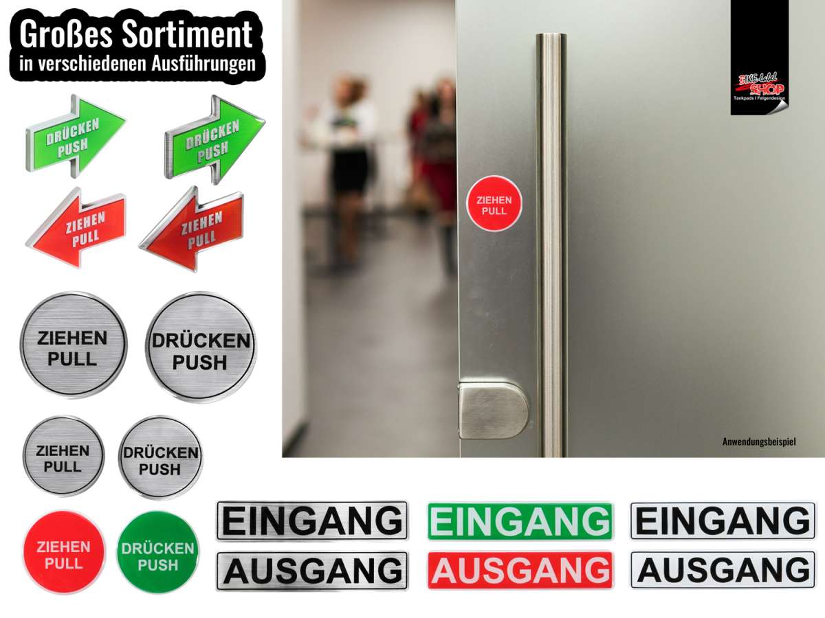 Schluss mit verwirrten Gästen, die an deinen Türen ziehen statt drücken - oder umgekehrt! Dieses praktische 4er-Set mit 3D-Aufklebern schafft Klarheit. Die schicken Schilder in Alu-Optik sehen nicht nur gut aus, sondern sind auch super funktional.