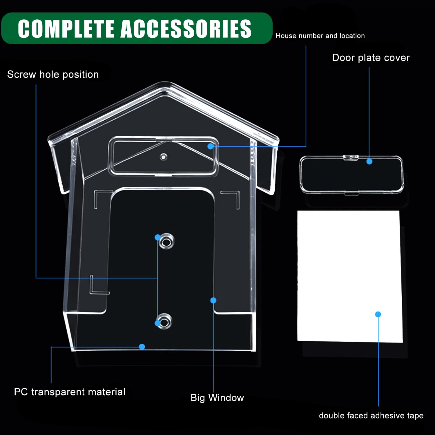 Mit den Maßen 9,7x6,4x6,4 cm passt sie auf die meisten drahtlosen Türklingeln. Das transparente Acryl-Material lässt den Bildschirm gut sichtbar und die Tasten erreichbar.