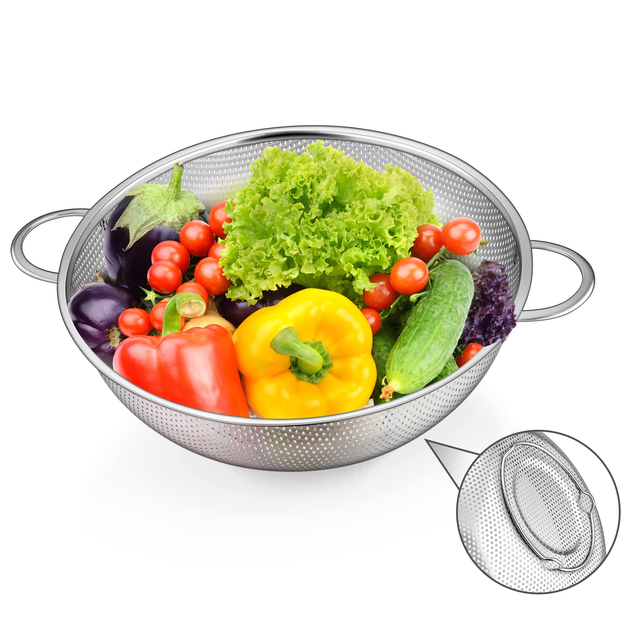 In jeder Küche unverzichtbar: Dieses Edelstahl-Sieb ist ein echter Allrounder! Mit 22,5 cm Durchmesser und 3 Quart Fassungsvermögen ist es perfekt für Nudeln, Reis, Gemüse und vieles mehr.