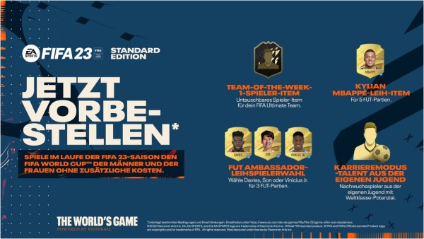 Fußball-Fans aufgepasst! FIFA 23 für die PlayStation 5 bringt den Königsfußball direkt in dein Wohnzimmer. Erlebe hyperrealistische Grafiken, flüssigere Animationen und ein noch authentischeres Spielgefühl dank der Next-Gen-Power der PS5. Mit verbesserten Gameplay-Mechaniken, neuen Spielmodi und allen aktuellen Mannschaftsaufstellungen bist du mitten im Geschehen. Ob Karrieremodus, Ultimate Team oder Online-Matches - hier findest du alles, was das Fußballerherz begehrt. Die DualSense-Funktionen der PS5 machen jedes Foul, jeden Schuss und jedes Tackling fühlbar. Verpasse keine Sekunde der Action und werde zum Star auf dem virtuellen Rasen! Perfekt für Einzelspieler und Multiplayer-Partys mit Freunden. Hol dir jetzt den ultimativen Fußball-Spaß und fiebere mit deinem Lieblingsverein mit!