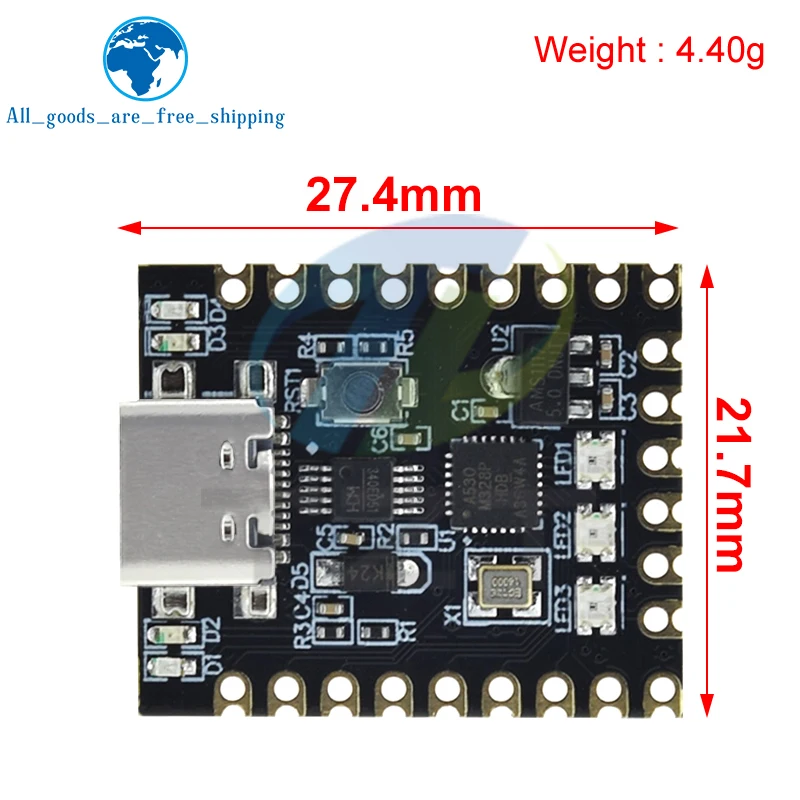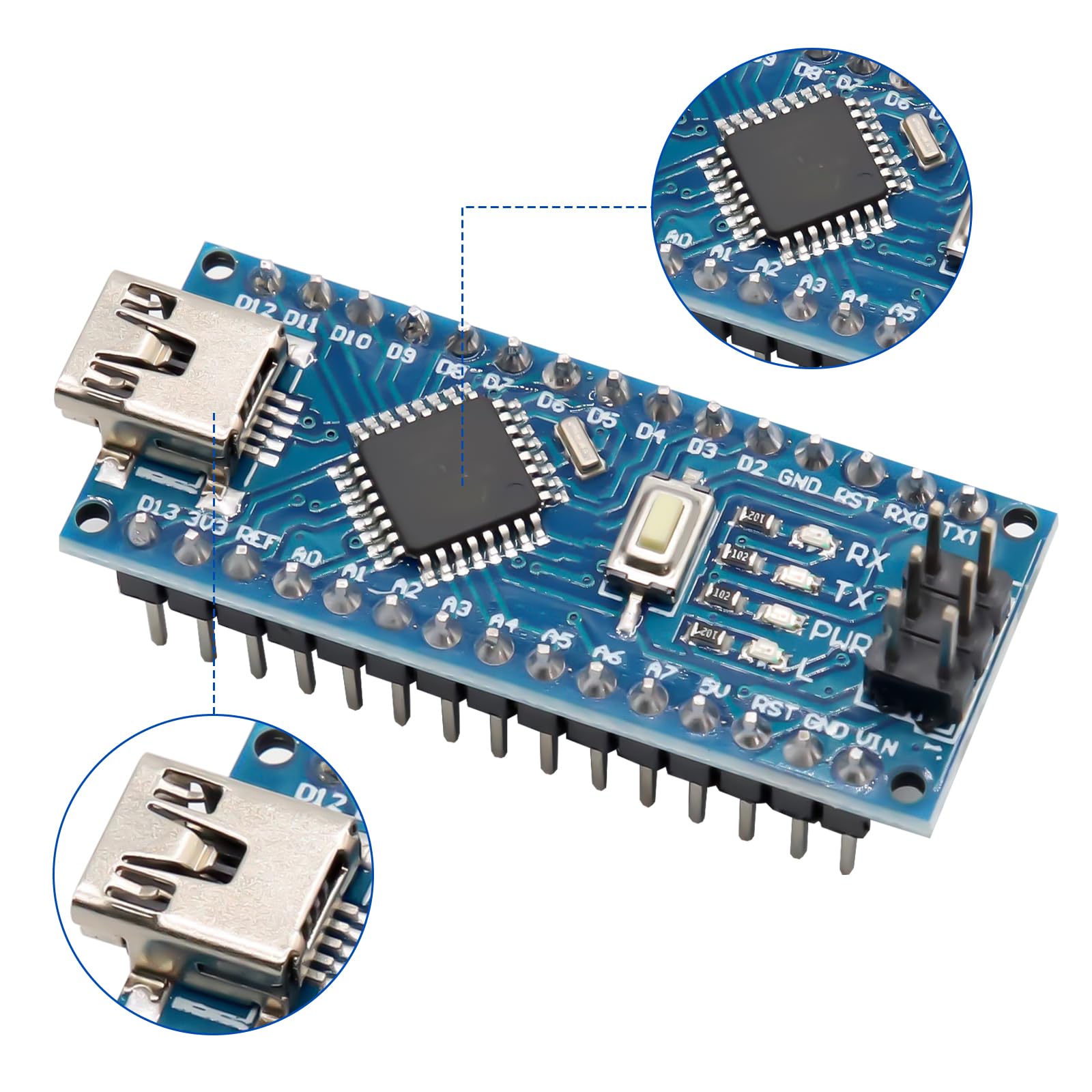 Perfekt für alle Elektronik-Begeisterten! Dieses 5er-Set Arduino Nano Boards ist ideal für deine ersten Schritte in der Mikrocontroller-Welt. Mit dem CH340 Chip und USB-C Anschluss bist du bestens ausgestattet. Die Boards laufen mit 5V und 16MHz Taktfrequenz - mehr als genug Power für die meisten Projekte. Du bekommst 14 digitale Ein-/Ausgänge, 8 analoge Eingänge und 6 PWM-Anschlüsse. Einfach die Arduino IDE herunterladen, Treiber installieren und losprogrammieren! Kompatibel mit Windows, Mac und Linux. Super für Roboter, LED-Steuerungen, Sensoren und alles, was dir sonst noch einfällt. Die Boards sind breadboard-freundlich und mit den mitgelieferten USB-Kabeln sofort einsatzbereit. Egal ob Schüler, Student oder Hobby-Bastler - mit diesem Set startest du direkt durch in die Welt der Elektronik!