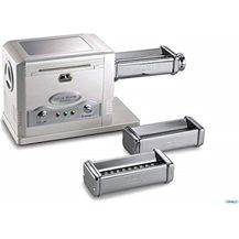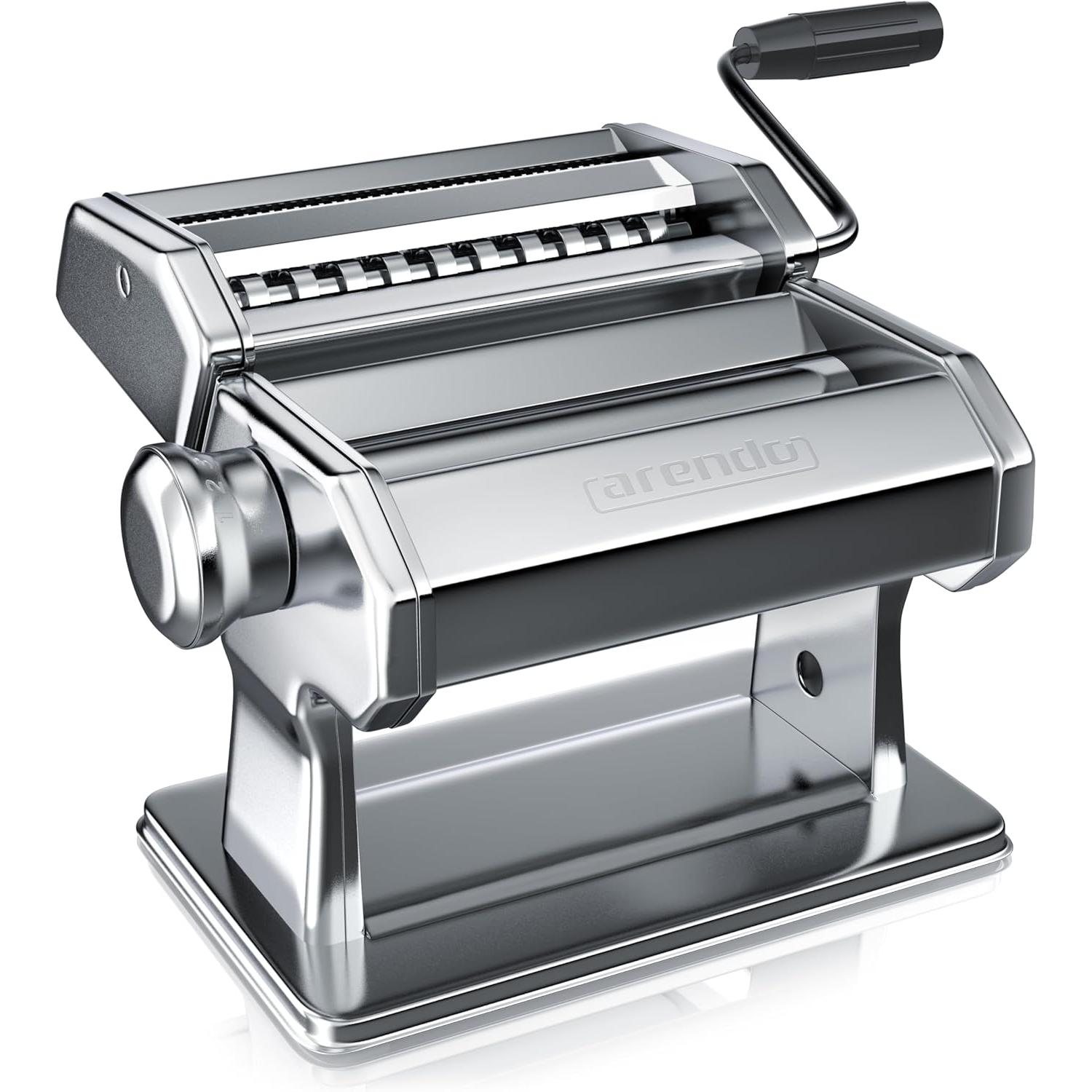 Italienische Pasta ganz einfach selbst gemacht! Die Arendo elektrische Nudelmaschine mit 120W Motor macht das Nudelmachen zum Kinderspiel. Du hast beide Hände frei, während der Motor den Teig durch die Walze zieht. Mit 5 einstellbaren Stärken von 0,6mm bis 2,5mm kannst du die Teigdicke genau nach deinen Wünschen einstellen. Im Lieferumfang sind drei Aufsätze enthalten: Eine Nudelwalze und zwei Schneidaufsätze für 2mm und 6mm breite Nudeln - perfekt für Spaghetti, Tagliatelle und mehr. Die Schnellwechsel-Aufnahme macht das Wechseln der Aufsätze super einfach. Mit 14cm Arbeitsbreite und rutschfesten Füßen steht die Maschine stabil auf der Arbeitsfläche. Aus lebensmittelechten Materialien gefertigt, ist sie absolut sicher in der Anwendung. Maße: 30x12x25,5cm, Gewicht 1880g. Inklusive Bedienungsanleitung - werde zum Pasta-Profi in deiner eigenen Küche!