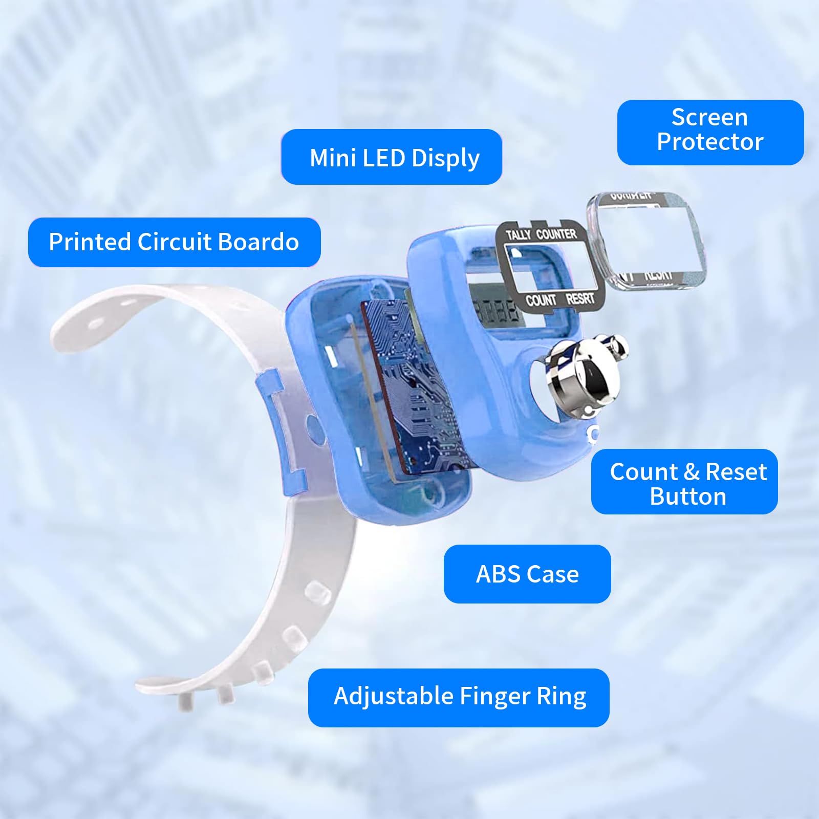 Zähle mühelos mit – ob beim Sport, beim Stricken oder im Alltag! Dieser digitale Fingerzähler zeigt bis zu 99.999 Zählungen auf einem klaren LCD-Display an. Mit Ein-Knopf-Bedienung und Reset-Funktion. Leicht, handlich und mit weichem Armband für komfortables Tragen. Aus robustem ABS-Kunststoff. Perfekt für Läufer, Golfer, Trainer oder jeden, der gerne den Überblick behält. Im 2er-Set – ideal zum Teilen oder als Ersatz.