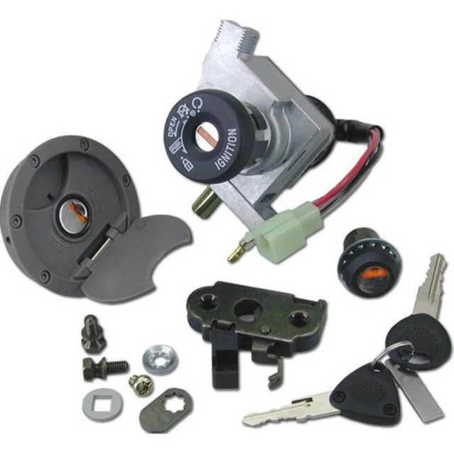 Autsch, Schlüssel abgebrochen oder verloren? Kein Stress! Mit diesem kompletten Schlosssatz für deine Yamaha Aerox 50 (ab Baujahr 1999) oder MBK Nitro 50 bist du wieder startklar. Im Lieferumfang ist alles dabei, was du brauchst: Zündschloss mit Kappe, Tankdeckel, Sitzbankmechanik, Schloss für den Batteriefachdeckel und natürlich 2 neue Schlüssel. Sogar die Abreisschrauben sind mit dabei! Alles in Erstausrüsterqualität - da passt jedes Teil genau, ohne dass du irgendwas anpassen musst. Wichtig: Check vorher unbedingt den Anschlussstecker von deinem originalen Zündschloss. Bei diesem Set handelt es sich um die Version mit eckigem Stecker (4-Pins) und einem Einzelpin. Einfach austauschen und schon kannst du wieder losdüsen - einfacher geht's nicht!