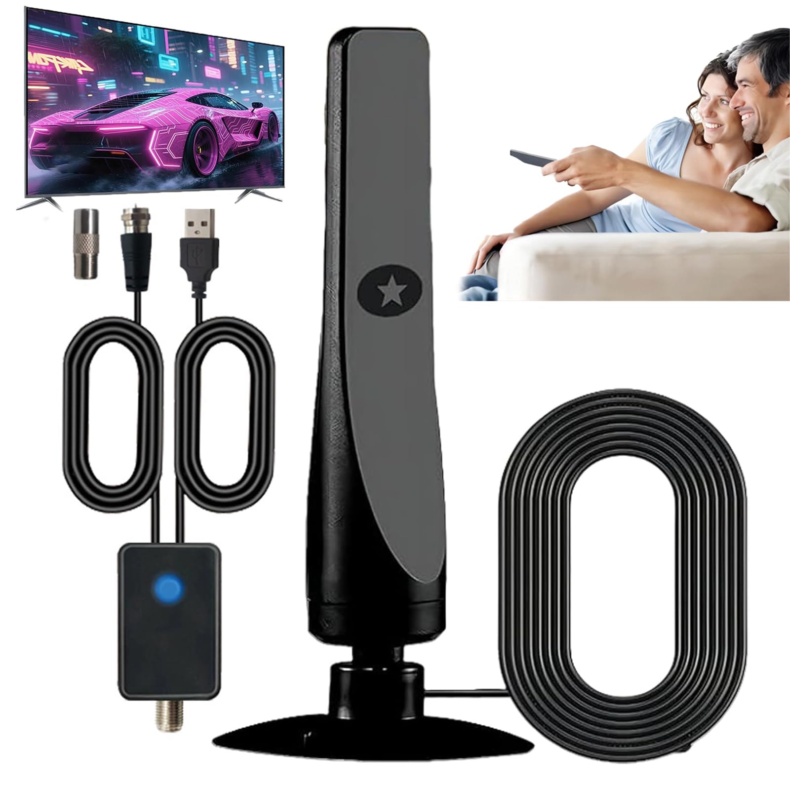 Mit 50 Meilen Reichweite empfängst du selbst in ländlichen Gebieten kristallklare Signale. Das 3 Meter lange Koaxialkabel gibt dir genug Spielraum für die optimale Platzierung. Einfach an den TV anschließen, Kanalsuche starten und schon kannst du loslegen!
