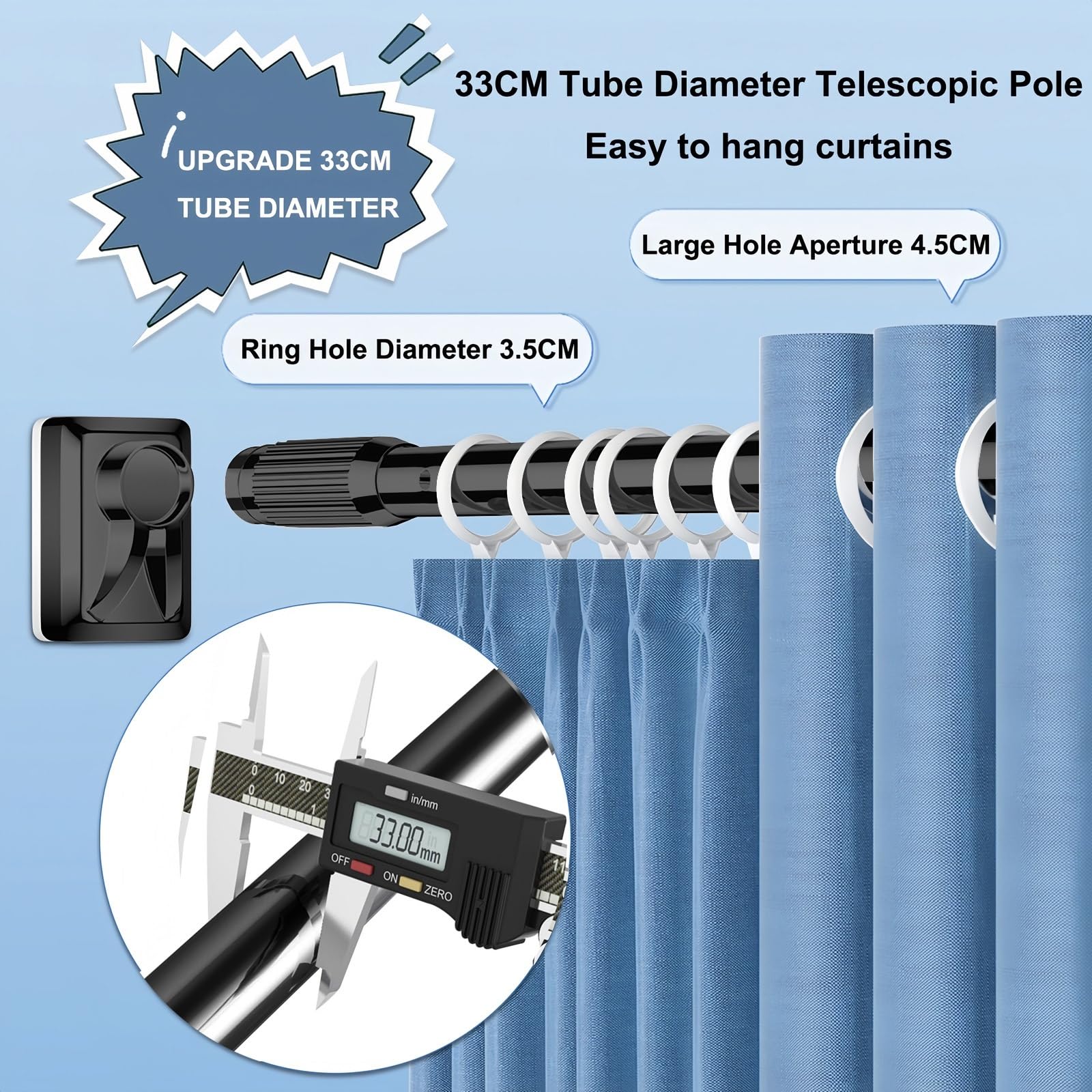 Mensch, diese Teleskop-Gardinenstange ist ja mega praktisch! Von 40 cm bis 500 cm verstellbar - da findest du für jedes Fenster die passende Größe. Und das Beste: Ohne Bohren! Einfach durch Drehen an der Stange festklemmen und schon hält sie. Die dicke Basis (7x10 cm) aus EBS-Material gibt super Halt an der Wand, nichts wackelt oder fällt runter. Aus hochfestem Edelstahl mit 33 mm Durchmesser - die Tragfähigkeit liegt zwischen 50-135 kg, je nach Länge. Perfekt nicht nur für Vorhänge im Schlafzimmer, sondern auch als Duschvorhangstange im Bad, als Kleiderstange im Schrank oder sogar als Raumteiler. Auf dem Balkon super für Pflanzen oder als Abtrennung. Die Reinigung ist kein Problem - einfach mit feuchtem Tuch abwischen, rostet nicht. Ob in Mietwohnung, Hotel oder eigenem Haus - diese Stange ist einfach universell einsetzbar. Einfach ausmessen, Stange auf Länge bringen, einklemmen - fertig! So einfach kann Gardinen aufhängen sein!