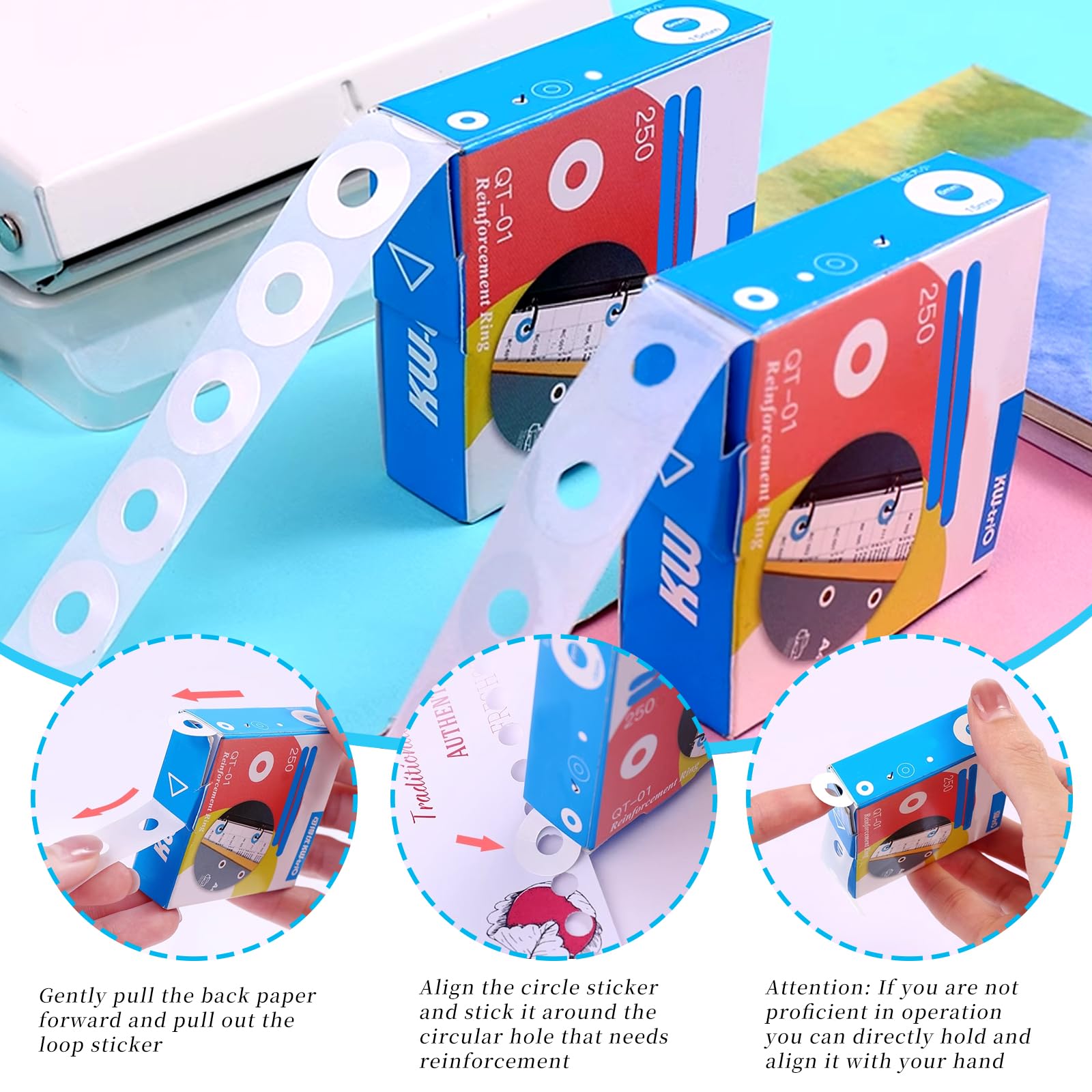 Dieses Perforationsset hat alles was du fürs Büro brauchst! 500 Verstärkungsaufkleber (250 weiß, 250 transparent) plus einen praktischen Locher. Die Aufkleber haben 15 mm Außendurchmesser und 6 mm Innendurchmesser - perfekt um eingerissene Löcher in Ordnern oder Kalendern zu reparieren. Aus reißfestem PVC-Material, wasserfest und langlebig. Einfach um das Loch kleben, festdrücken - und schon hält alles wieder. Der Locher macht saubere 6 mm Löcher. Super für Schule, Büro oder zu Hause. Nie wieder gerissene Lochungen in deinen wichtigen Dokumenten!