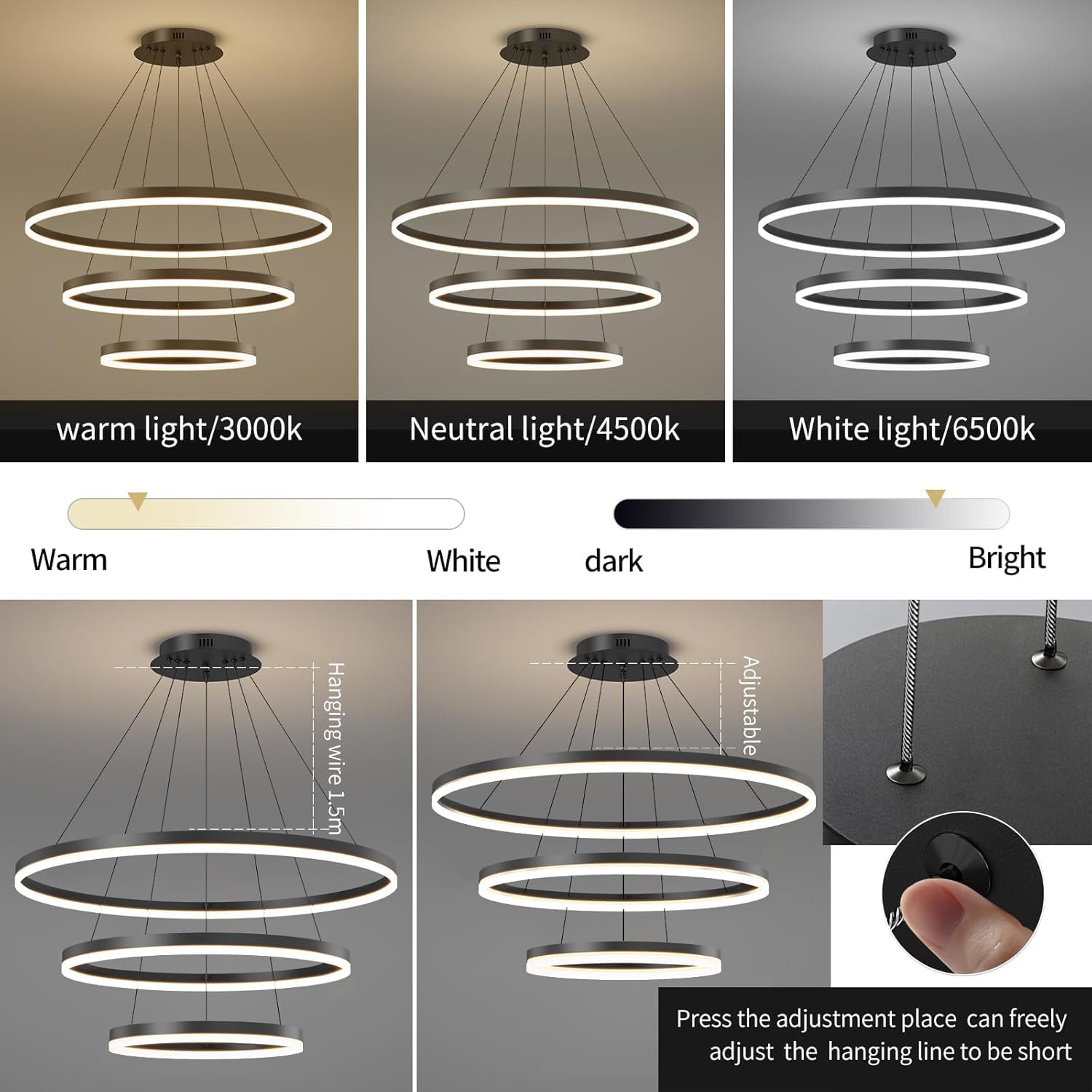 Alter, diese Pendelleuchte ist ja mal richtig stylisch! 50cm Durchmesser, schwarz, aus Metall und Acryl - sieht total edel aus. Mit Fernbedienung dimmbar und 3 Farbtemperaturen (3000K-6500K) von warmem Gemütlichkeitslicht bis hellem Arbeitslicht. 48W LED-Leistung, super energiesparend. Die Aufhängung ist von 40-140cm verstellbar, passt also in jeden Raum. Einfache Montage - keine Vorkenntnisse nötig. Perfekt für Wohnzimmer, Esszimmer oder Schlafzimmer. Das Acryl verteilt das Licht gleichmäßig und blendfrei. Sieht aus wie teuer Designerware, kostet aber nur einen Bruchteil. Einfach mal die Decke aufwerten!