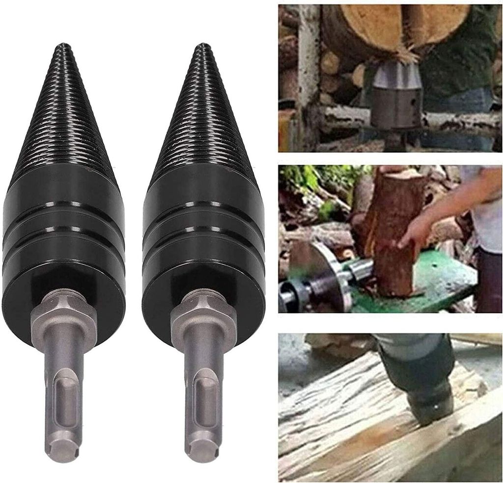 • Holzspalter Bohrer Set 50mm + 32mm - Kegelspalter Für Bohrmaschine Mit 4 Griffen