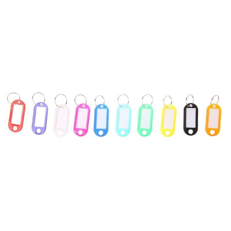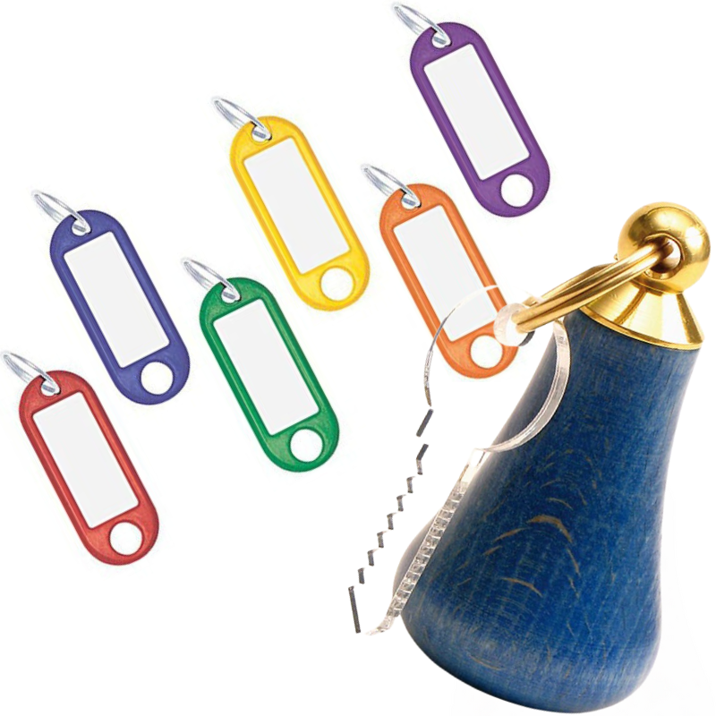 Schlüsselchaos ade! Mit diesen 50 praktischen Schlüsselanhängern aus flexiblem Kunststoff behältst du immer den Überblick. Jeder Anhänger hat ein transparentes Fenster, in das du deine Beschriftung schieben kannst - super einfach zu wechseln! Erhältlich in 5 Farben (je 10 Stück): Weiß, Gelb, Rot, Grün und Blau. Maße: 5,7x3cm, Papierkern 4,4x2,5cm. Perfekt für Schlüssel, Gepäck, Haustier-Halsbänder oder als bunte Organisationshelfer für Büro und Haushalt. Geruchlos, robust und langlebig. Nie wieder suchen - einfach beschriften und sofort finden. Ein Must-Have für alle, die Ordnung lieben!