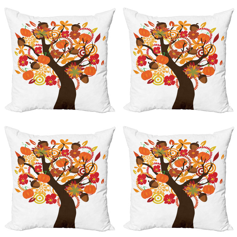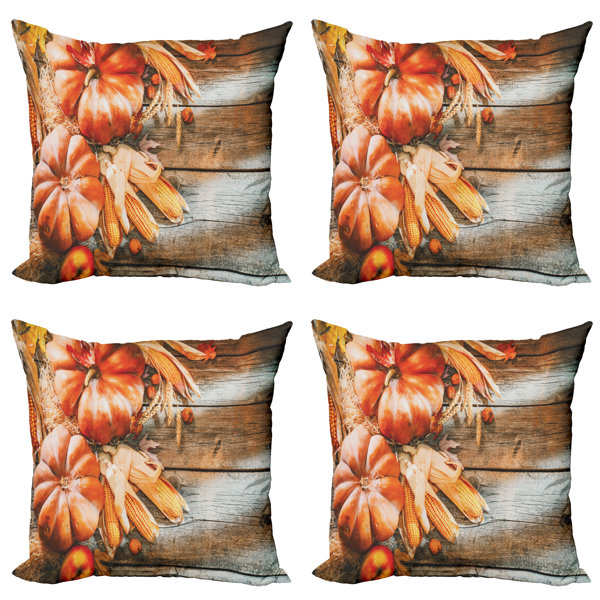 2er Set Herbst Kissenbezüge 50x50cm - Kürbis Design In Creme Für Gemütliche Wohnraumdekoration