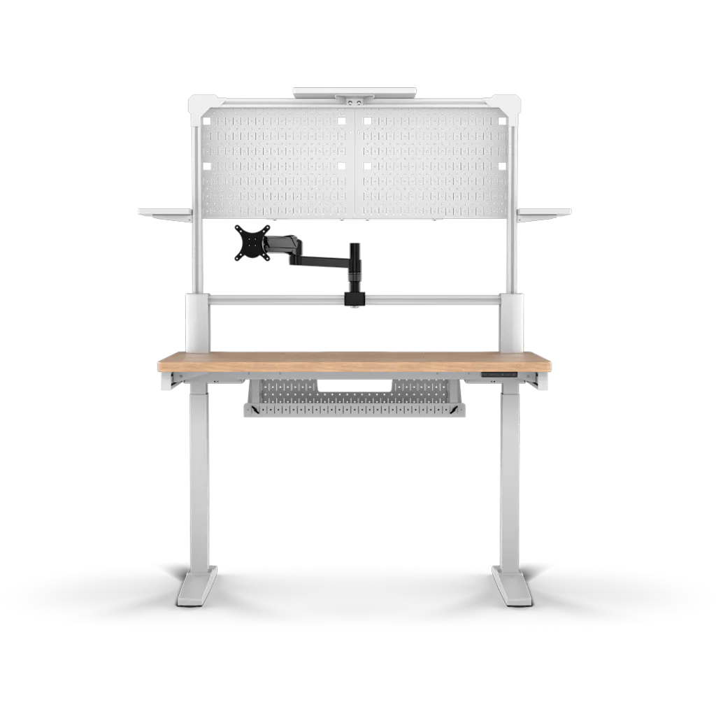 Endlich Ordnung auf dem Schreibtisch! Diese weiße Lochplatte von Ergolutions (52x42,5 cm) verwandelt deinen Arbeitsplatz in eine aufgeräumte Oase. Mit den praktischen Tischklemmen befestigst du sie einfach an Tischplatten bis 6 cm Stärke. Im Lieferumfang ist alles dabei: Becherhalter, Notizzettel-Box, Kopfhörerhalter, Ablageregal, 5 Magnete und 4 Haken. Die magnetische Metallplatte kannst du zusätzlich als Memoboard nutzen. Super flexibel - alle Teile lassen sich individuell anordnen. Ob im Büro, Homeoffice, an Näh- oder Werkstatt-Tisch - diese Lochwand bringt System in deine Utensilien. Einfach montieren und sofort mehr Übersicht genießen. Damit findest du alles sofort und arbeitest viel konzentrierter!