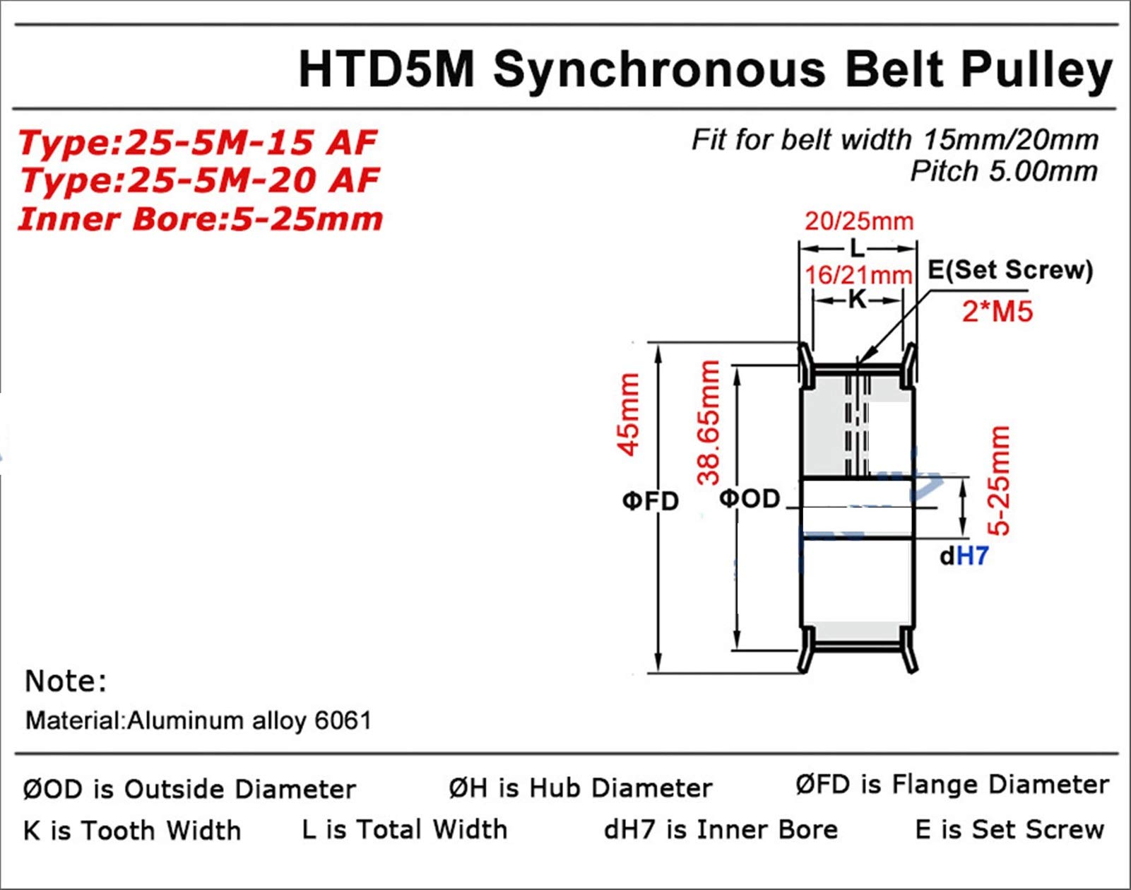 Zahnriemenscheibe 25 Zähne HTD 5M - Präzisions-Riemenscheibe Für Maschinen