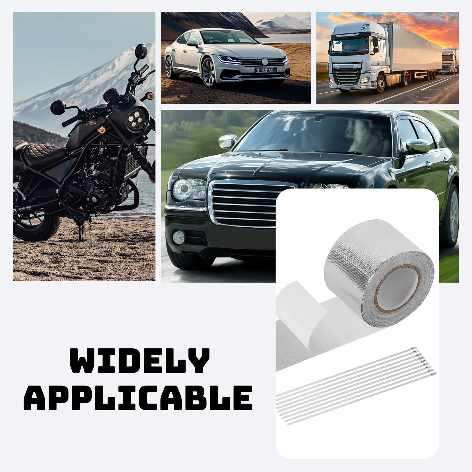 Hey KFZ-Fans! Dieses Hitzeschutzband ist der absolute Game-Changer für dein Auto oder Motorrad! Mit satten 10 Metern Länge und 5 cm Breite hast du genug Material für alle heißen Stellen an deinem Fahrzeug. Das coole Glasfaser-Material mit Aluminiumbeschichtung hält problemlos Temperaturen bis 450°C stand und schützt Krümmer, Schläuche und Kabel zuverlässig. Einfach die gewünschte Länge abschneiden, Trägerpapier abziehen und fest andrücken - die starke Selbstklebung hält bombenfest! Die 12 beiliegenden Kabelbinder geben zusätzliche Sicherheit. Neben dem Hitzeschutz reduziert das Band auch lästige Geräusche und Vibrationen. Perfekt für Tuning, Reparaturen oder einfach zum Schutz empfindlicher Bauteile. Egal ob am Auspuff, an der Motorhaube oder an Kabeln - dieses Band ist dein bester Freund in der Werkstatt!