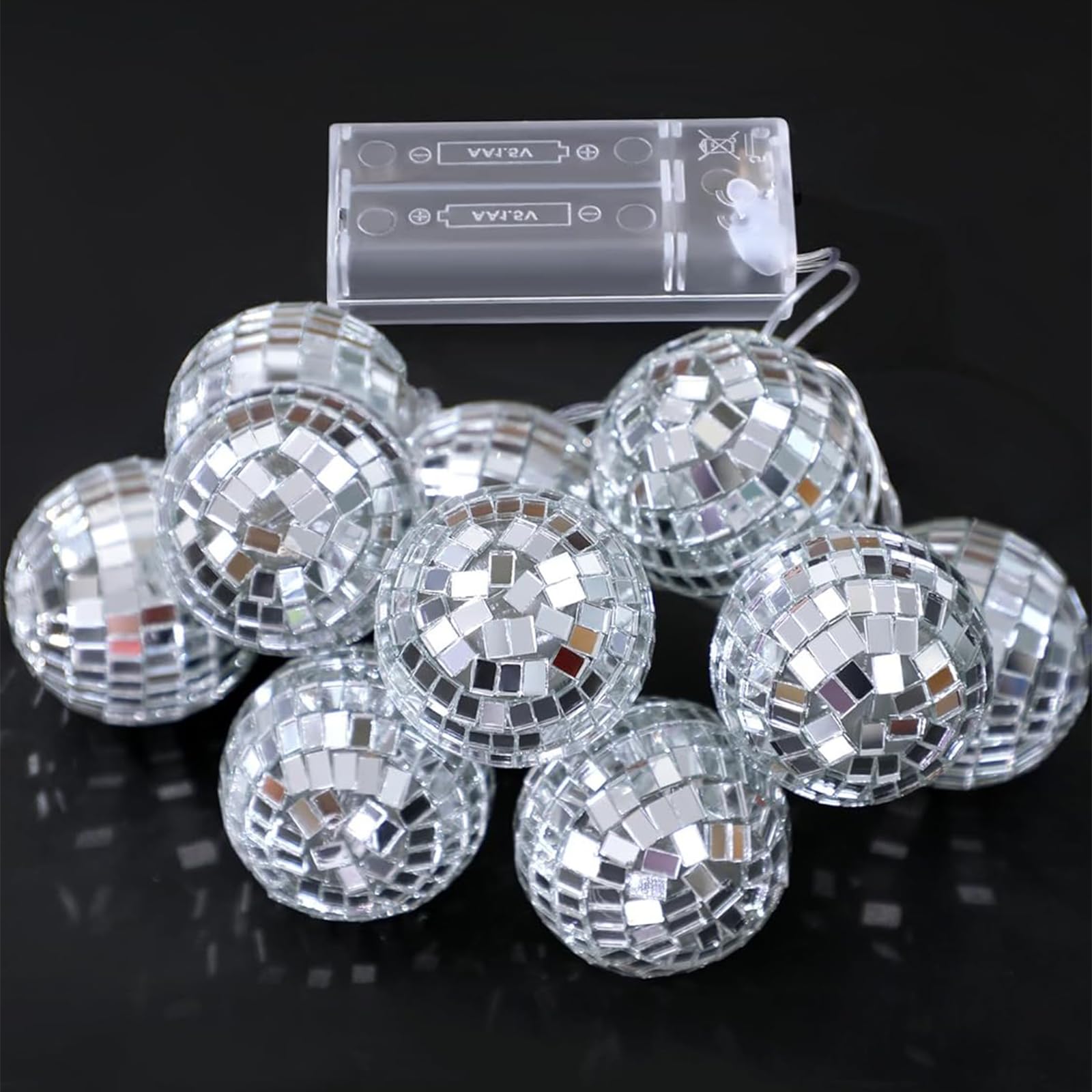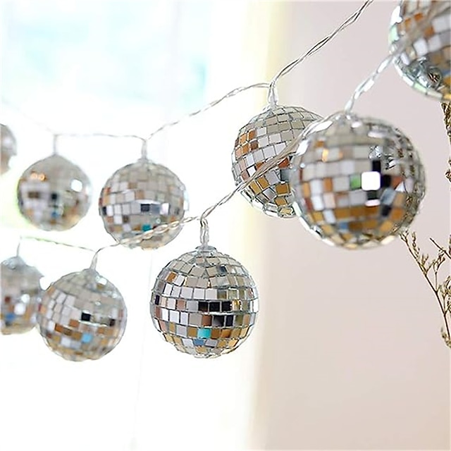 Disco-Feeling für dein Zuhause! Diese 1,5m lange Lichterkette mit 10 kleinen Discokugeln bringt Partystimmung in jeden Raum. Jede Kugel ist aus reflektierendem Glas und wirft traumhafte Lichteffekte. Batteriebetrieben mit 2 AA-Batterien (nicht im Lieferumfang) - super flexibel und überall einsetzbar. Perfekt für Partys, Hochzeiten, Weihnachten oder einfach als Deko im Jugendzimmer. Die LEDs sind wasserdicht und berührungssicher - auch für Familien mit Kindern geeignet. Verwandele dein Wohnzimmer in eine Mini-Disco und genieße die magische Atmosphäre! Einfach aufhängen und die Party kann beginnen!