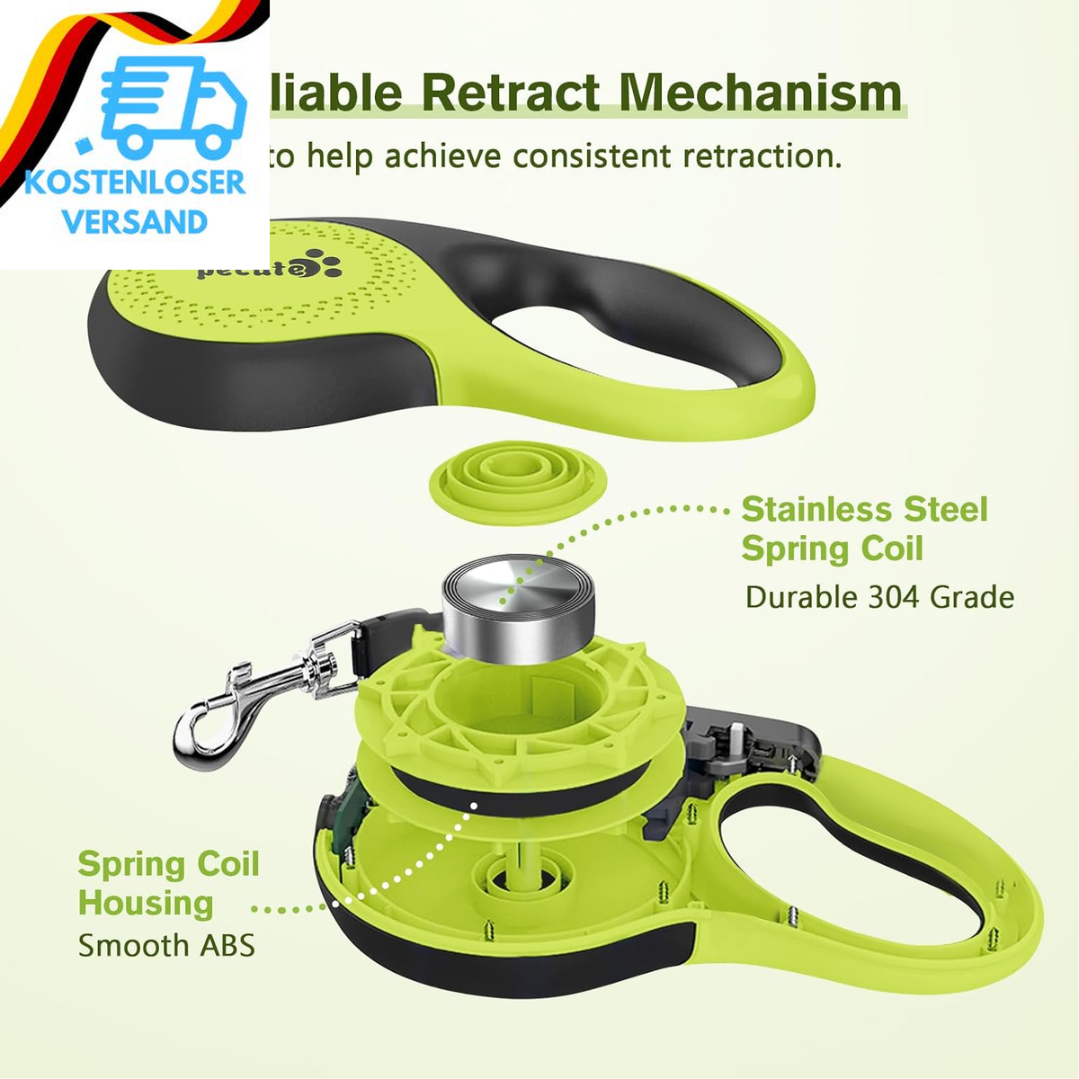 Hey, diese einziehbare Hundeleine ist einfach genial für alle Hundebesitzer! Mit 5 Metern Länge gibt's genug Freiraum für deinen Hund, aber du hast trotzdem die Kontrolle. Aus robustem Nylon gefertigt - flexibel, verschleißfest und reißfest! Die Ein-Klick-Funktion macht's super einfach: Einfach drücken für mehr Spielraum, sperren für weniger Abstand. Der ergonomische Griff liegt perfekt in der Hand und ist rutschfest - auch bei nassen Händen kein Problem! Das Schloss dreht sich 360 Grad - kein lästiges Verdrehen mehr! Passt für kleine, mittlere und große Hunde - wirklich universell einsetzbar! Einfach den Knopf drücken und die Leine lässt sich automatisch aufrollen - mega praktisch! Perfekt für Spaziergänge, Stadtbesuche oder den Hundespielplatz! Übrigens: Bitte nicht den Hund plötzlich losrennen lassen und nicht drauf beißen lassen - dann hält die Leine ewig! Mit nur 185 Gramm total leicht zu tragen - kaum spürbar in der Hand! Einfach ausprobieren und sich über die Freiheit für Hund und Herrchen freuen!