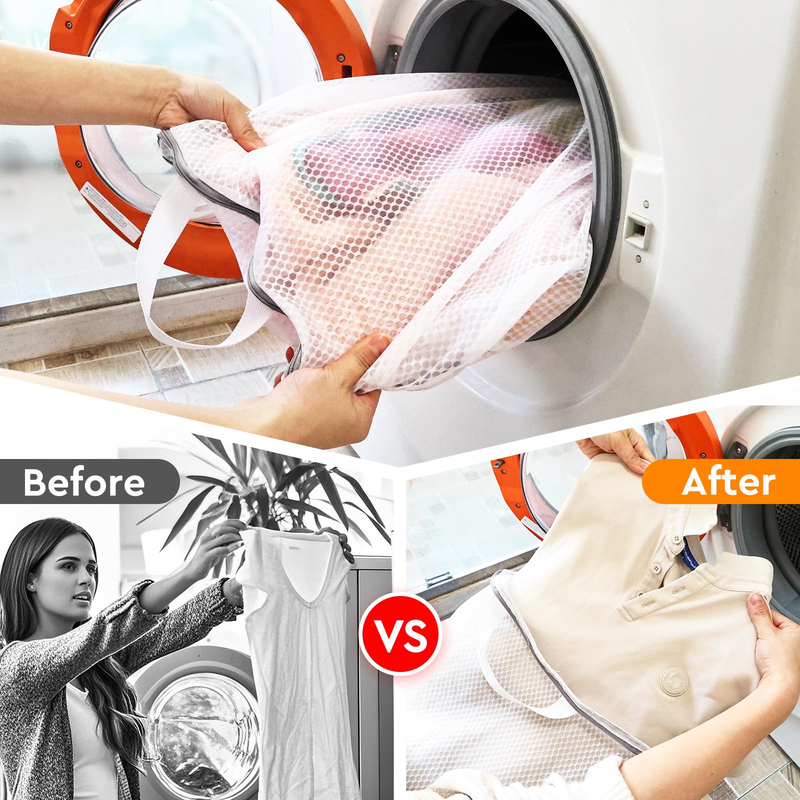 Schütze deine Lieblingskleidung in der Waschmaschine! Diese 5 praktischen Wäschenetze aus robustem Polyester sind perfekt für empfindliche Textilien. Mit sicherem Reißverschluss, der sich nicht in anderen Kleidungsstücken verfängt. Die Wabenstruktur lässt Wasser und Waschmittel optimal durch, schützt aber vor Verheddern und Verformungen. Ideal für BHs, Unterwäsche, Seidenblusen, Sportkleidung oder Babykleidung. Auch super als Reisebeutel oder zur Aufbewahrung. Maße: 40x30 cm - genug Platz für mehrere Teile. Verstärkte Nähte für lange Haltbarkeit. Einfach in die Waschmaschine geben und bei Bedarf wieder verwenden. Schont deine Kleidung und deine Waschmaschine!