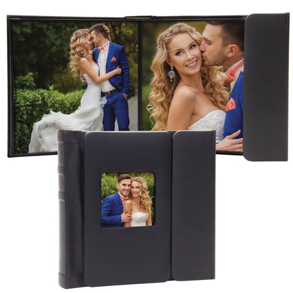 Mini Hochzeits-Fotoalbum 6,3x8,9cm - Schwarzes Kunstleder Für 10 Fotos