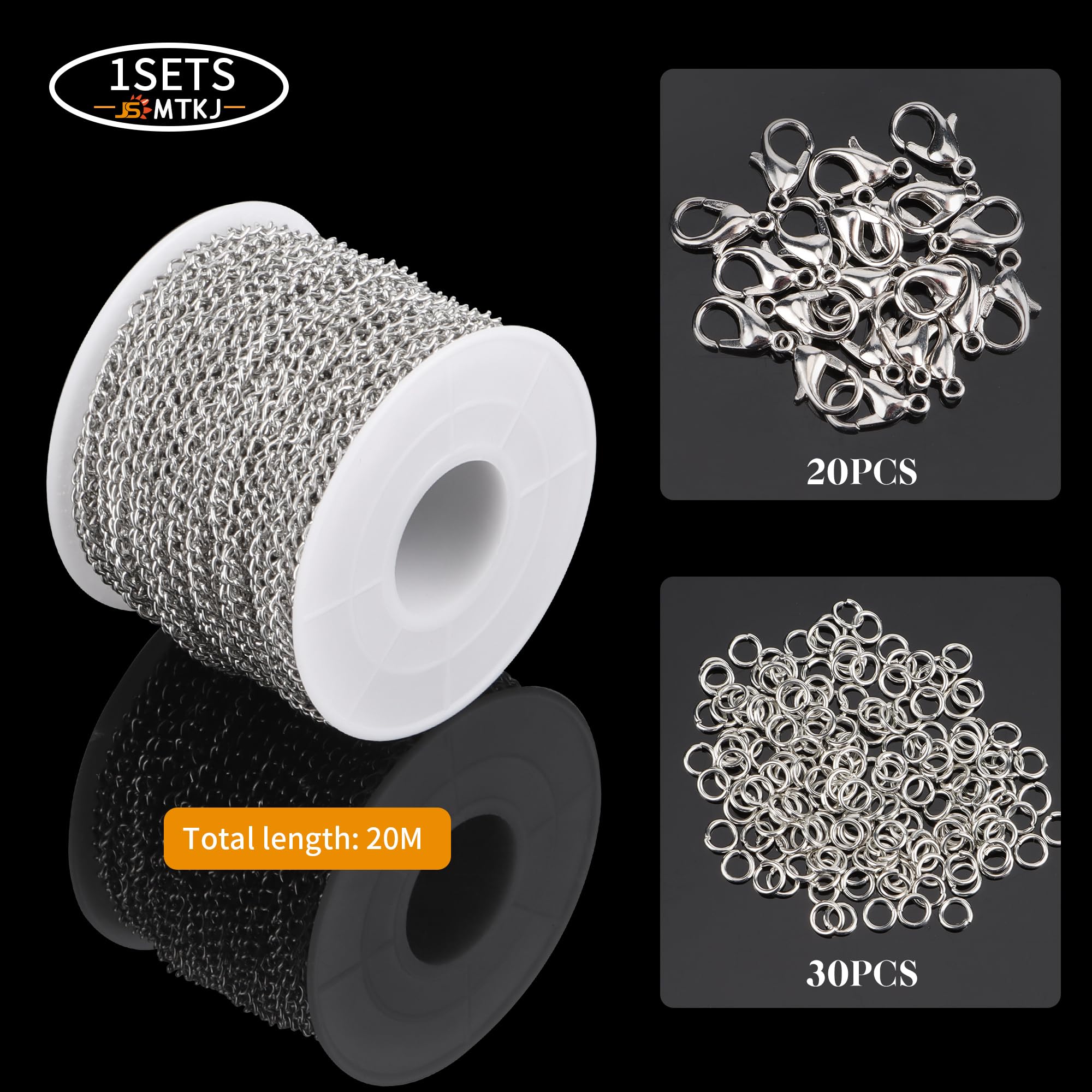 Boah, für alle DIY-Schmuck-Fans ist dieses Set ja mal ein Traum! Du bekommst 6 Rollen Gliederkette in Silber - insgesamt stolze 14 Meter Material zum Basteln. Dazu gibt's 20 Karabinerverschlüsse, 60 große Biegeringe, 60 kleine Biegeringe und 20 U-förmige Ringe. Alles aus robustem Eisen mit silberner Galvanisierung, das nicht rostet oder korrodiert. Das Beste: Eine praktische Spitzzange ist auch dabei, mit der du die Ketten super einfach zuschneiden kannst. Die Rollenform verhindert, dass sich alles verheddert - einfach die benötigte Länge abschneiden und den Rest zurückrollen. Perfekt für Halsketten, Armbänder, Haarschmuck oder andere kreative Projekte. Wenn du also gerne bastelst und individullen Schmuck herstellen willst, dann ist dieses Set genau das Richtige für dich. Einfach bestellen und deiner Kreativität freien Lauf lassen!