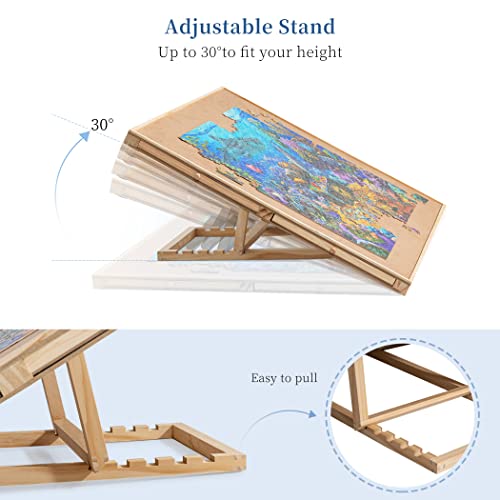 Puzzle-Spaß ohne Chaos! Dieses praktische Puzzle Board mit 106x80cm Nutzfläche bietet Platz für Puzzles bis 2000 Teile. Mit 6 farbigen Filz-Schubladen zum Sortieren und Filz-Abdeckung zum Schutz vor Haustieren. Der verstellbare Stand (bis 30°) schont Rücken und Nacken. Leicht (3.7kg) und faltbar für einfache Aufbewahrung. Aus hochwertigem Filz, der die Teile sicher hält. Perfekt für Puzzle-Fans!