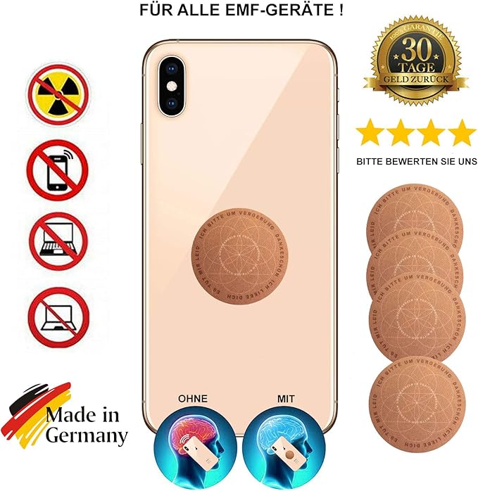 Schütze dich vor Elektrosmog! Diese 6 Strahlenschutz-Aufkleber reduzieren elektromagnetische Strahlung von Handys, Laptops und Tablets. Ultradünn und unauffällig - stören nicht beim Gebrauch. Einfach aufkleben und wirken lassen. Silberfarben, rundes Design. Neutralisieren schädliche Wellen und schützen deine Gesundheit. Perfekt für alle, die viel mit elektronischen Geräten arbeiten. Einfache Anwendung - einfach abziehen und aufkleben. Auch für Computer, Radios und Fernseher geeignet. Kleine Investition, großer Schutz für dich und deine Familie. Fühl dich sicher mit deiner Technik!